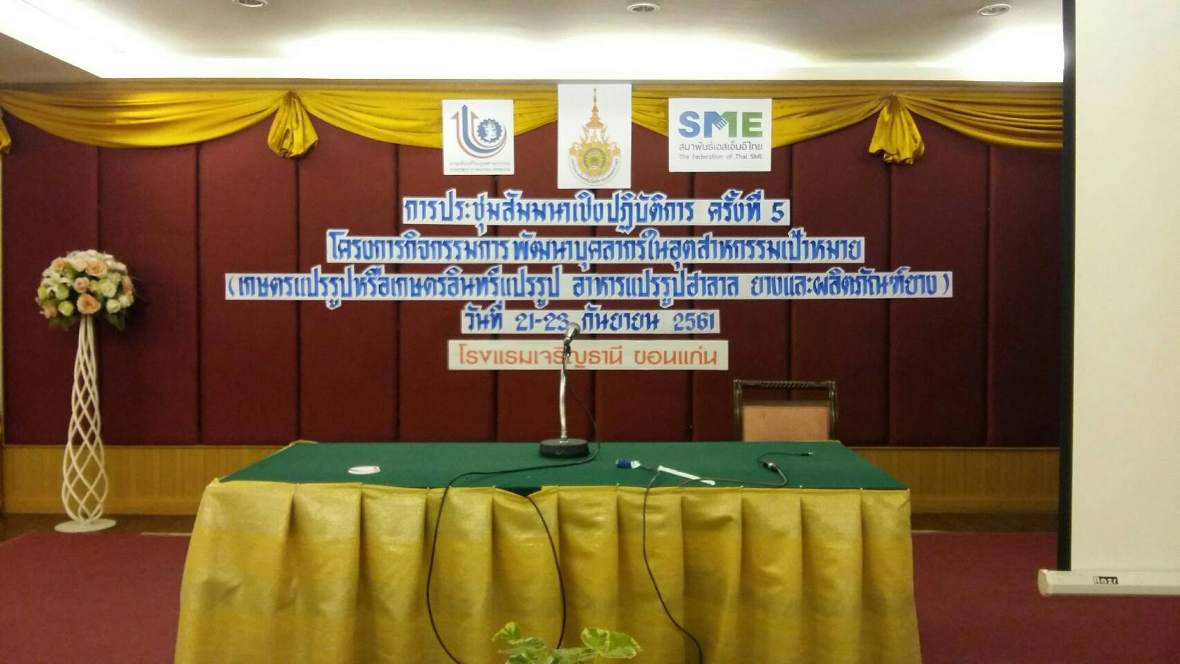 สถาบันสหวิทยาการดิจิทัลและหุ่นยนต์ มหาวิทยาลัยเทคโนโลยีราชมงคลพระนครได้ดำเนินโครงการ ร่วมกับกรมส่งเสริมอุตสาหกรรมและสมาพันธ์เอสเอ็มอีไทย ได้มีการจัดประชุมครั้งที่ 5 โครงการกิจกรรมการพัฒนาบุคลากรในอุตสาหกรรมเป้าหมาย ภายใต้โครงการเพิ่มศักยภาพและยกระดับเทคโนโลยีอุตสาหกรรมเป้าหมาย วันศุกร์ ที่ 21 – วันอาทิตย์ ที่ 23 กันยายน 2561 ณ โรงแรมเจริญธานี จังหวัดขอนแก่น