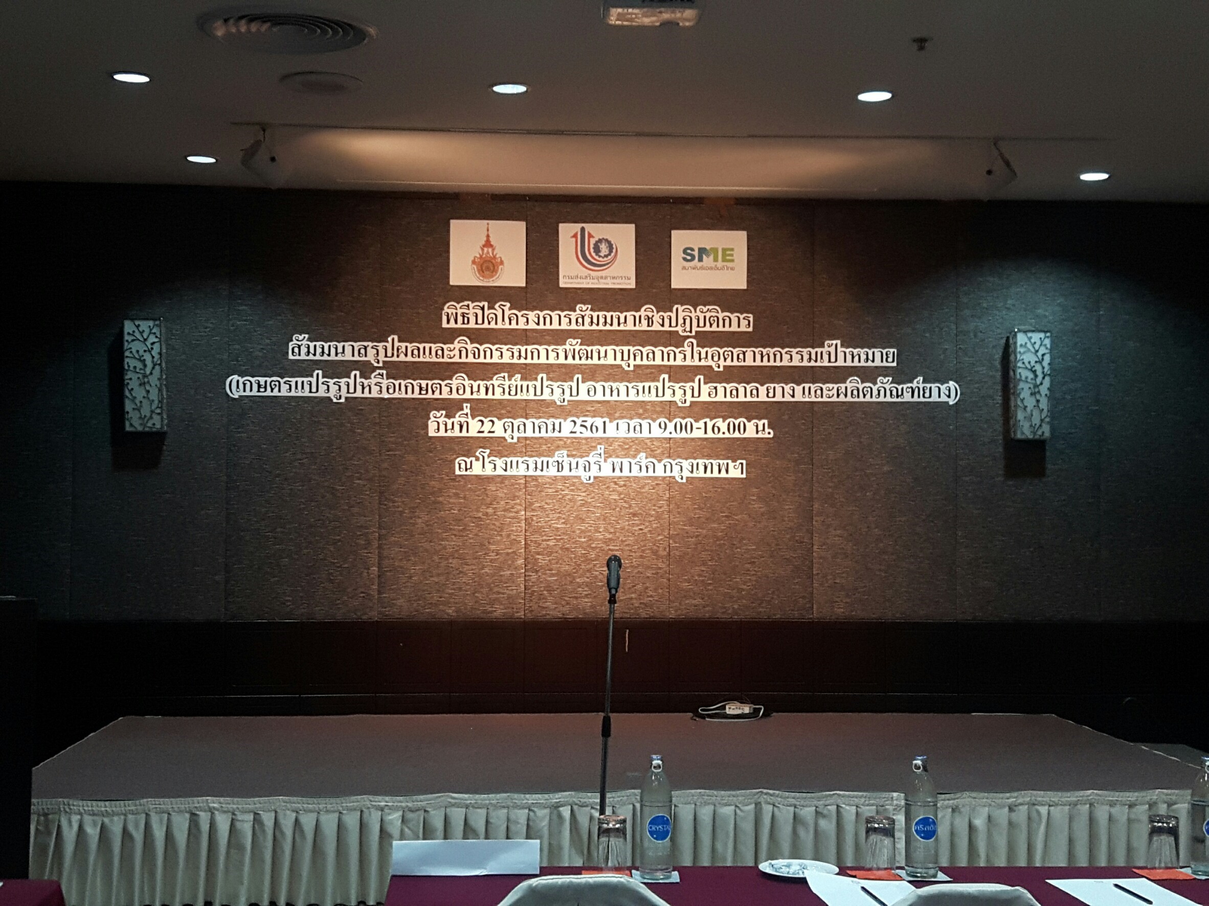 นางยุพรัตน์ ศตวิริยะ ผู้อำนวยการกองพัฒนาขีดความสามารถธุรกิจอุตสาหกรรม กรมส่งเสริมอุตสาหกรรม ให้เกียรติเป็นประธานพิธีปิดโครงการเพิ่มศักยภาพและยกระดับเทคโนโลยีอุตสาหกรรมเป้าหมาย ประจำปีงบประมาณ 2561 กล่าวรายงานการจัดโครงการโดย ผศ.สหรัตน์ วงษ์ศรีษะ รองอธิการบดีฝ่ายวางแผนและกายภาพ มหาวิทยาลัยเทคโนโลยีราชมงคล ซึ่งโครงการดังกล่าวได้ดำเนินการสำเร็จบรรลุตามเป้าหมายที่กำหนดเป็นที่เรียบร้อย เมื่อวันจันทร์ ที่ 22 ตุลาคม 2561 ณ ห้องแซฟไฟร์ ชั้น 2 โรงแรมเซ็นจูรี่ ปาร์ค กรุงเทพมหานคร