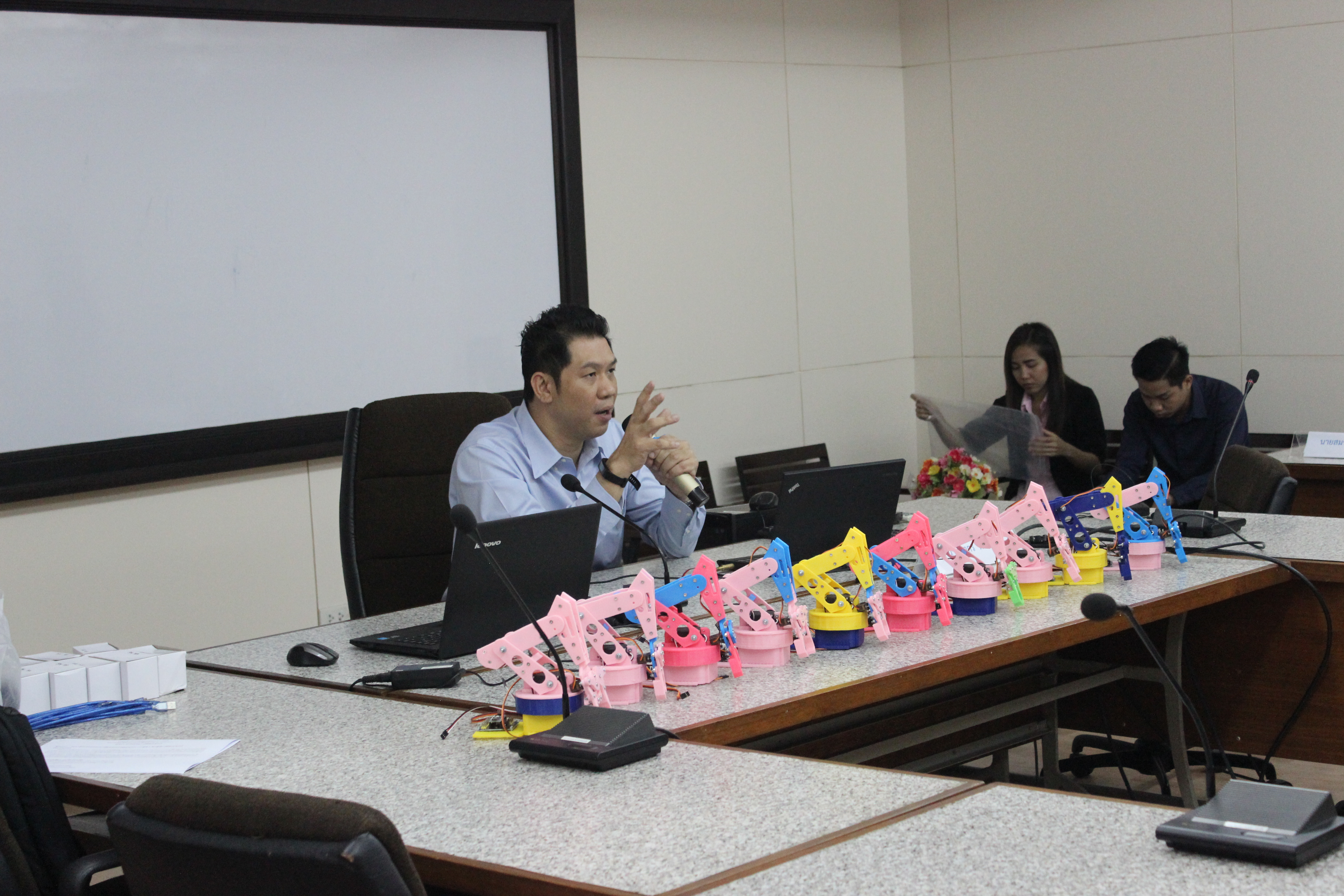 เมื่อวันที่ 21 กุมภาพันธ์ 2562 ดร.ปริญญ์ บุญกนิษฐ รองอธิการบดีฝ่ายนวัตกรรมและเทคโนโลยี มหาวิทยาลัยเทคโนโลยีราชมงคลพระนคร เป็นประธานเปิดการอบรมโครงการอบรมและทดสอบทักษะหุ่นยนต์คลัสเตอร์แขนกล ภาคปฏิบัติ ระหว่างวันที่ 21 – 23 กุมภาพันธ์ 2562 จัดโดย สถาบันสหวิทยาการดิจิทัลและหุ่นยนต์ เพื่อสร้างทักษะทางด้านการพัฒนาแขนกลขนาดเล็กและ 3D printing สนับสนุนการพัฒนาอุตสาหกรรมศักยภาพให้นักศึกษาและบุคลากรจากภาคอุตสาหกรรมเป็นนักปฏิบัติมืออาชีพยุคดิจิทัล สอดคล้องกับความต้องการของภาคอุตสาหกรรมยุค 4.0 ซึ่งมีนักศึกษา อาจารย์และบุคคลากรที่สนใจจากภาคอุตสาหกรรม เช่นบริษัท Häfele (Thailand) เป็นต้น เข้าร่วมการอบรม ณ ห้องเฟืองเงิน ชั้น 3 อาคารเอนกประสงค์ ราชมงคลพระนคร (ศูนย์พระนครเหนือ)