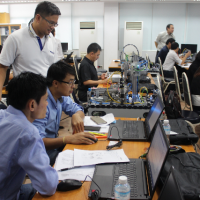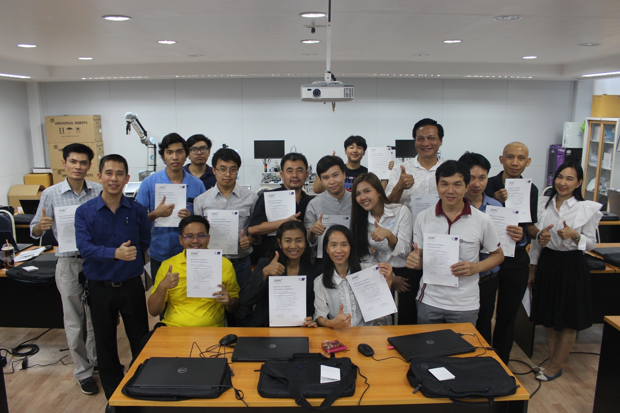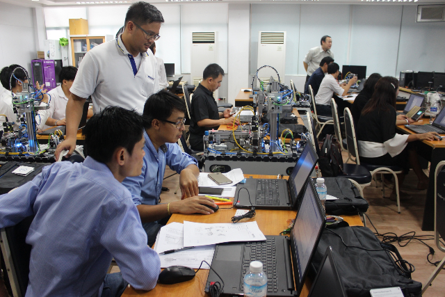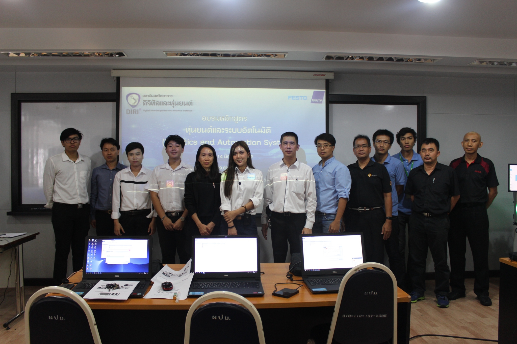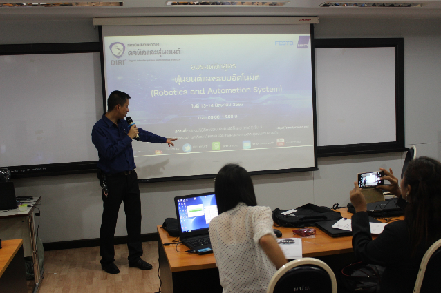 สถาบันสหวิทยาการดิจิทัลและหุ่นยนต์ มหาวิทยาลัยเทคโนโลยีราชมงคลพระนคร จัดโครงการอบรมหลักสูตร Robotice and Automation System (หุ่นยนต์และระบบการผลิตอัตโนมัติ) เพื่อสร้างทักษะเชิงปฏิบัติการทางด้านการใช้โปรแกรมจำลองสำหรับกระบวนการผลิตที่ใช้คำสั่งโดยอัตโนมัติ การสร้างฟังก์ชั่นควบคุมการทำงานของหุ่นยนต์อุตสาหกรรม โดยมุ่งเน้นให้ผู้เข้าอบรมเกิดทักษะในการพัฒนาความรู้ ความสามารถในการแข่งขันในโลกอาชีพ ตลอดจนเป็นการพัฒนากำลังคนรองรับความต้องการของภาคอุตสาหกรรมยุค 4.0 ทั้งนี้มีผู้เข้าอบรมกว่า 20 คน อาทิบริษัทอาซาฮี-ไทย อัลลอย จำกัด สถาบันเทคโนโลยีไทย-ญี่ปุ่น ฯลฯ ระหว่างวันที่ 13-14 มิถุนายน 2562 ณ ห้อง 2301 ห้องปฏิบัติการสถาบันสหวิทยาการดิจิทัลและหุ่นยนต์ ชั้น 3 อาคารเอนกประสงค์ คณะวิศวกรรมศาสตร์ ราชมงคลพระนคร (ศูนย์พระนครเหนือ)