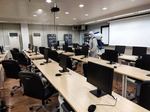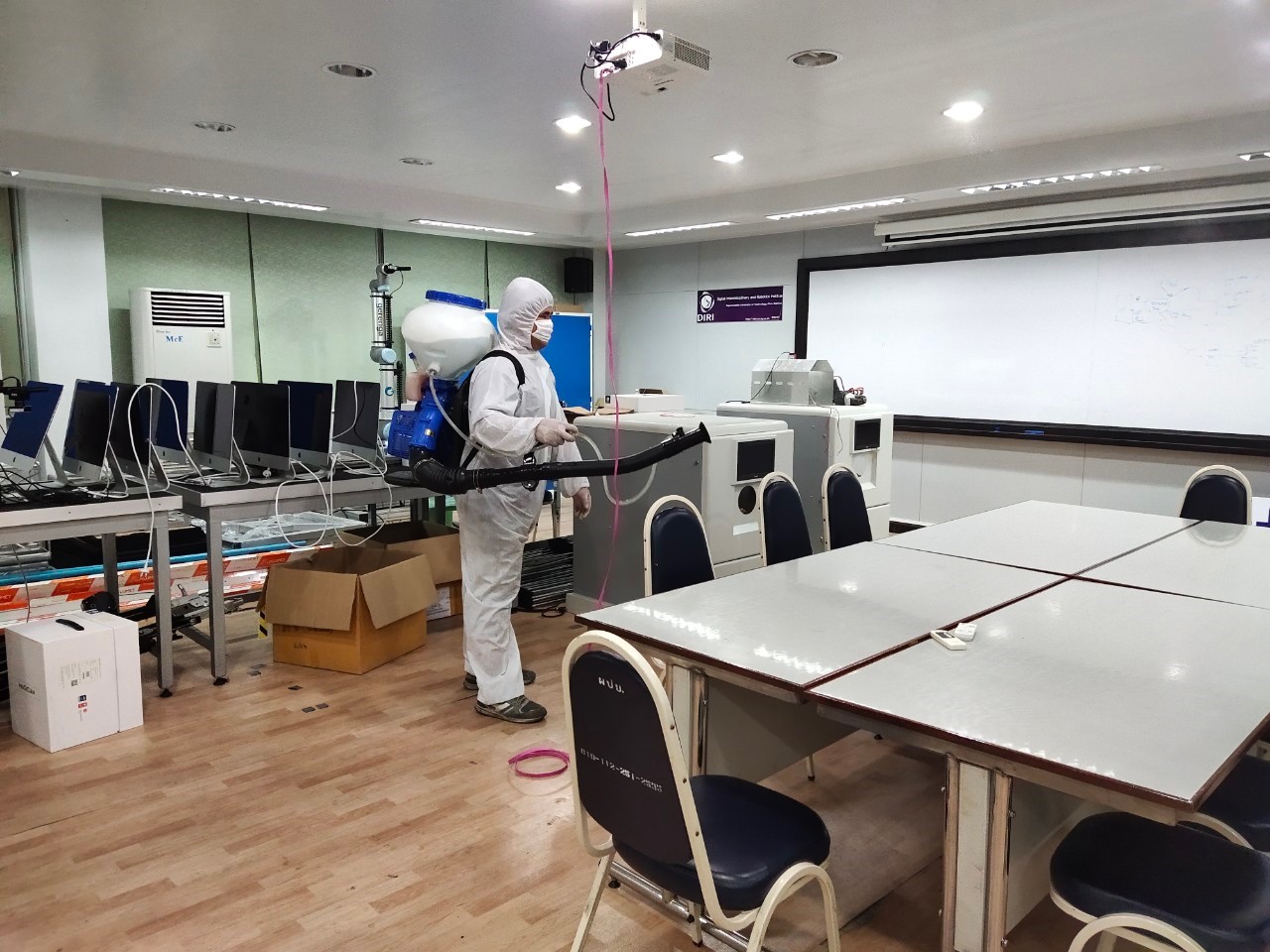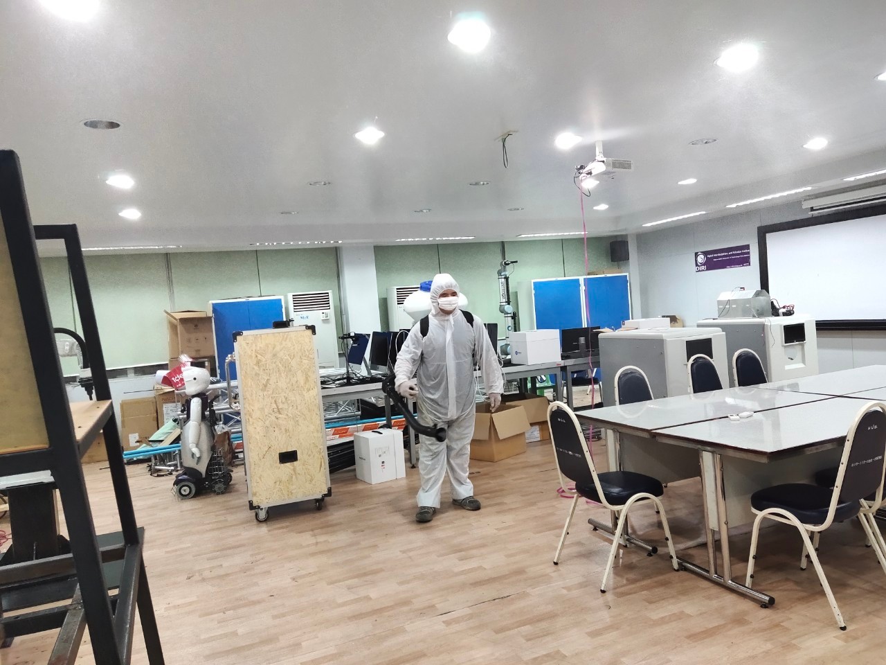 สถาบันสหวิทยาการดิจิทัลและหุ่นยนต์ มหาวิทยาลัยเทคโนโลยีราชมงคลพระนคร ดำเนินการฉีดพ่นฆ่าเชื้อไวรัสบริเวณภายในอาคาร ห้องปฏิบัติการ และบริเวณจุดที่มีการสัมผัสเป็นประจำ เช่น โต๊ะทำงาน ,ห้องปฏิบัติการทั้ง 3 ห้อง , อุปกรณ์การเรียนการสอน เป็นต้น ซึ่งเป็นมาตรการป้องกันการแพร่ระบาดของเชื้อไวรัสโคโรนา (โควิด 19) เพื่อสร้างความมั่นใจและความปลอดภัยให้กับบุคลากรภายในและบุคคลภายนอก ณ มหาวิทยาลัยเทคโนโลยีราชมงคลพระนคร วิทยาเขตพระนครเหนือ เมื่อวันที่ 30 มีนาคม 2563