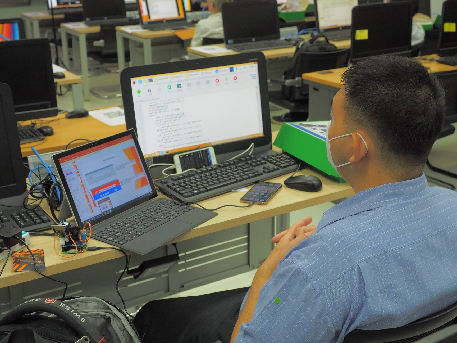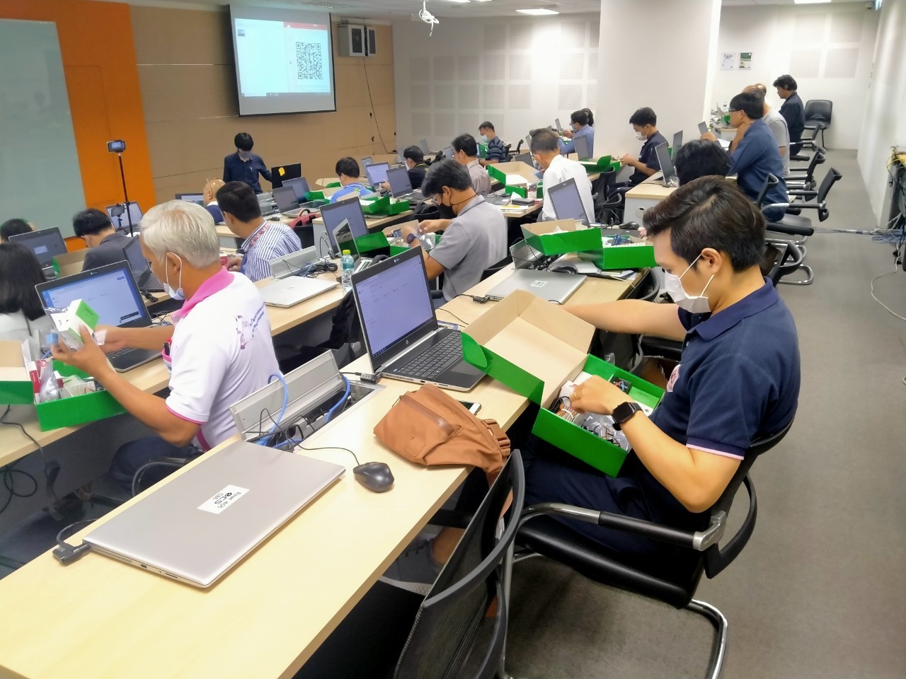 สถาบันสหวิทยาการดิจิทัลและหุ่นยนต์ มหาวิทยาลัยเทคโนโลยีราชมงคลพระนคร จัดโครงการอบรม “การพัฒนาความรู้ระบบ AI และ Image Processing เพื่อแก้ปัญหาการผลิตสำหรับอุตสาหกรรม SME ในคลัสเตอร์ S-Curve” โดยผู้เข้าอบรมจะได้รับเนื้อหาและความรู้ในเรื่อง การประยุกต์ใช้ระบบ AI ในภาคอุตสาหกรรม , เทคนิคการใช้ Machine Learning ในภาคอุตสาหกรรม , Workshop Lap Python , Machine Learning ฯลฯ ทั้งนี้ได้รับความสนใจจากผู้เข้าร่วมอบรม อาทิ นักศึกษา บุคลากรภาครัฐและภาคอุตสาหกรรมมากมาย ฯลฯ การอบรมจัดขึ้นจำนวน 6 รุ่น ระหว่างวันที่ 8-31 กรกฎาคม 2563 ณ สำนักบริการคอมพิวเตอร์ มหาวิทยาลัยเกษตรศาสตร์