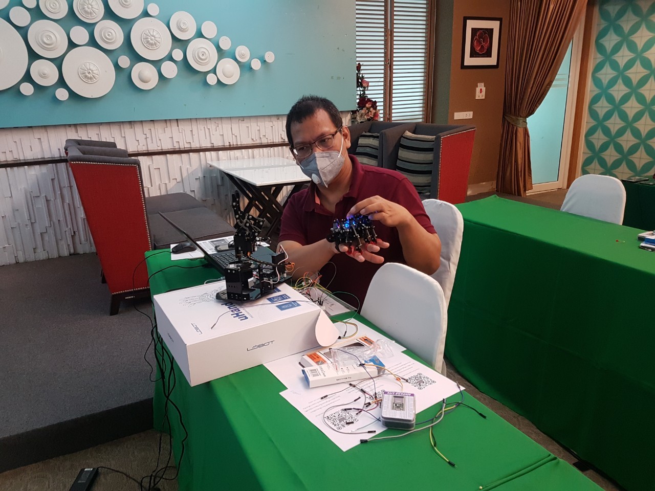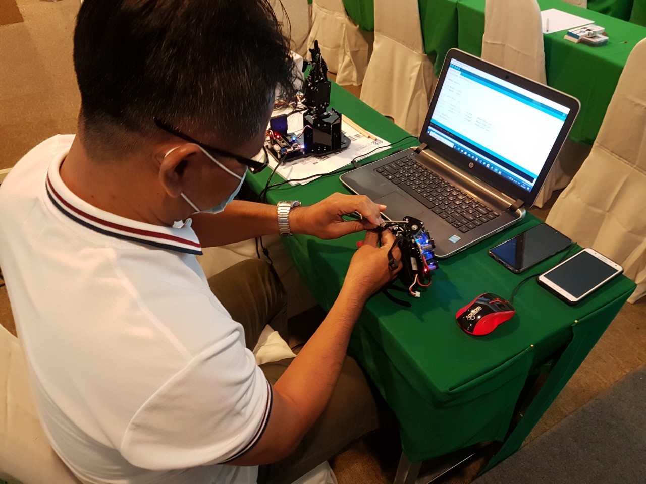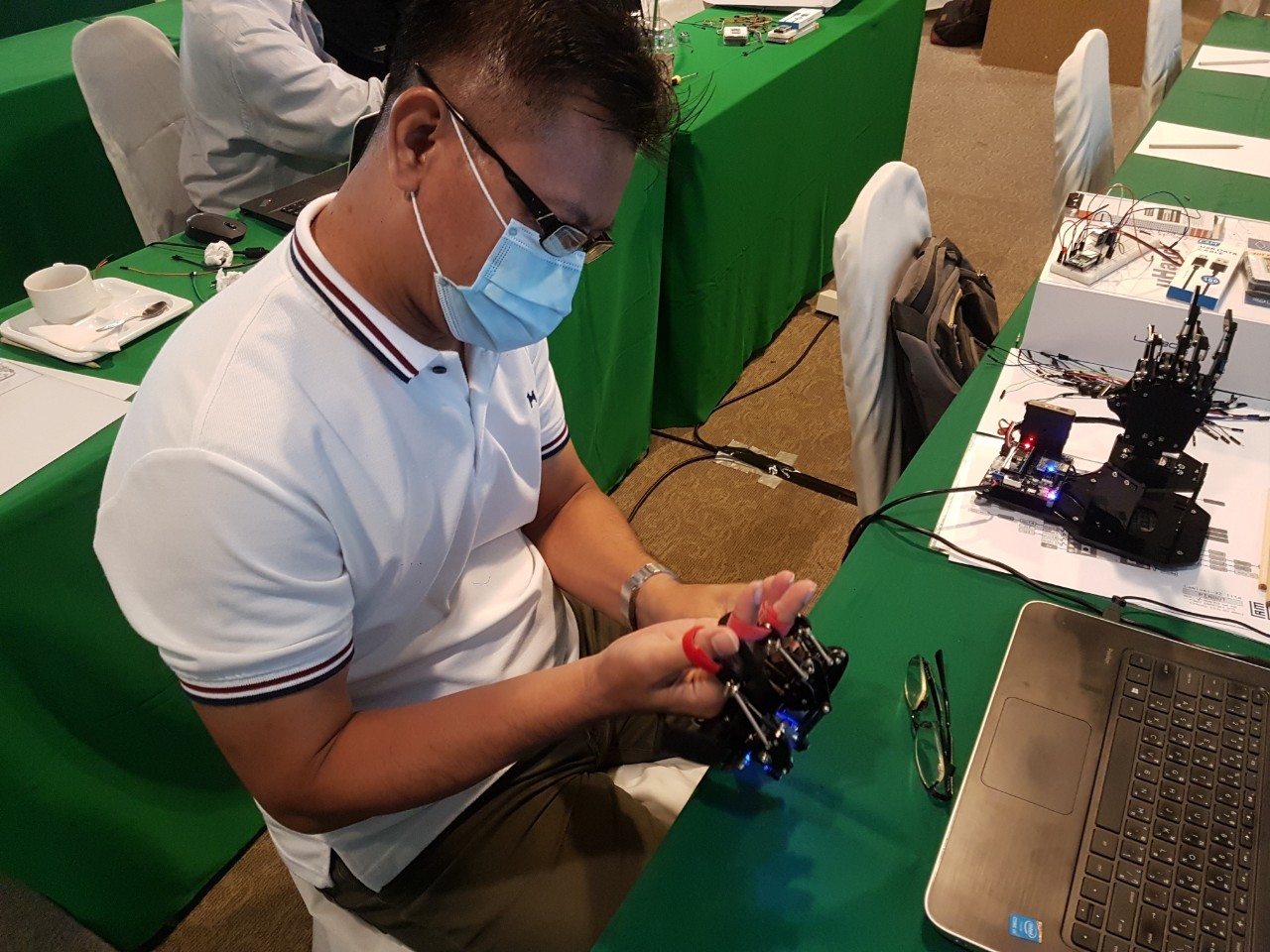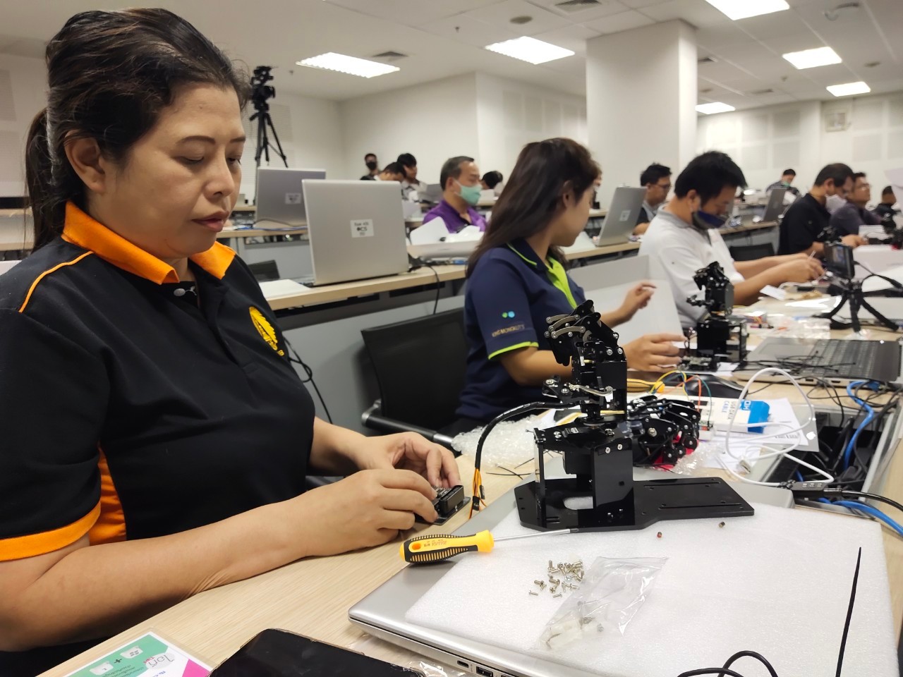 สถาบันสหวิทยาการดิจิทัลและหุ่นยนต์ มหาวิทยาลัยเทคโนโลยีราชมงคลพระนคร จัดโครงการพัฒนาหลักสูตรและเนื้อหาวิทยาการหุ่นยนต์ฮิวแมนนอยด์ เพื่ออุตสาหกรรมบริการและการศึกษาด้วยเทคโนโลยีแบบ mix reality การสร้างหุ่นยนต์ด้วย Mixed reality หลักสูตร ระดับขั้นพื้นฐาน ปานกลาง และขั้นสูง รุ่นที่ 1-6 ระหว่างวันที่ ๑๓-๓๐ สิงหาคม 2563 เพื่อพัฒนาคอนเทนต์หลักสูตรฝึกอบรมการสร้างและประกอบหุ่นยนต์บริการด้วยเทคโนโลยี Mixed reality ทั้งนี้ได้รับเกียรติจาก นาวาตรี ดร.วุฒิพงศ์ พงศ์สุวรรณ ผู้เชี่ยวชาญด้าน Digital Technology AR , VR และระบบ ROS เป็นวิทยากรให้ความรู้ในเรื่องของ การใช้งานโปรแกรม Arduino IDE เชื่อมต่อกับบอร์ดคอนโทรเลอร์ , การใช้งานโปรแกรม Unity , Workshop การใช้งานมือกล เป็นต้น โดยมีผู้สนใจเข้าร่วมอบรม ประกอบด้วยนักศึกษา บุคลากรของรัฐ และภาคเอกชน ณ สำนักบริการคอมพิวเตอร์ ห้องปฏิบัติการคอมพิวเตอร์ ชั้น 4 มหาวิทยาลัยเกษตรศาสตร์ (บางเขน) กรุงเทพฯ
