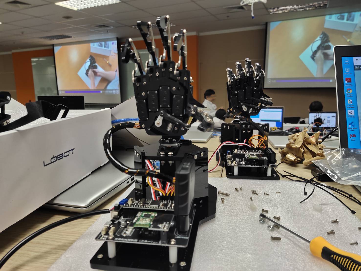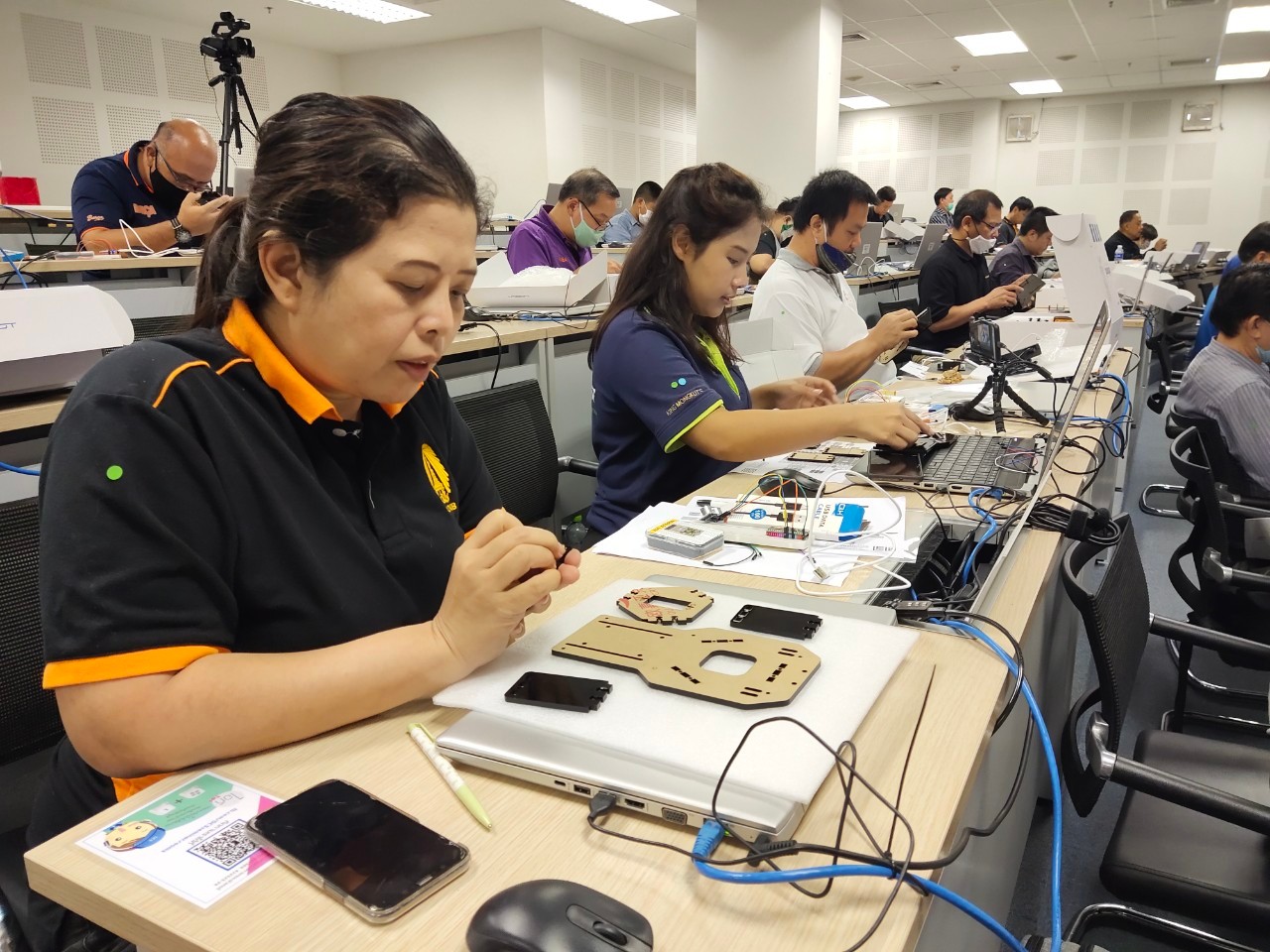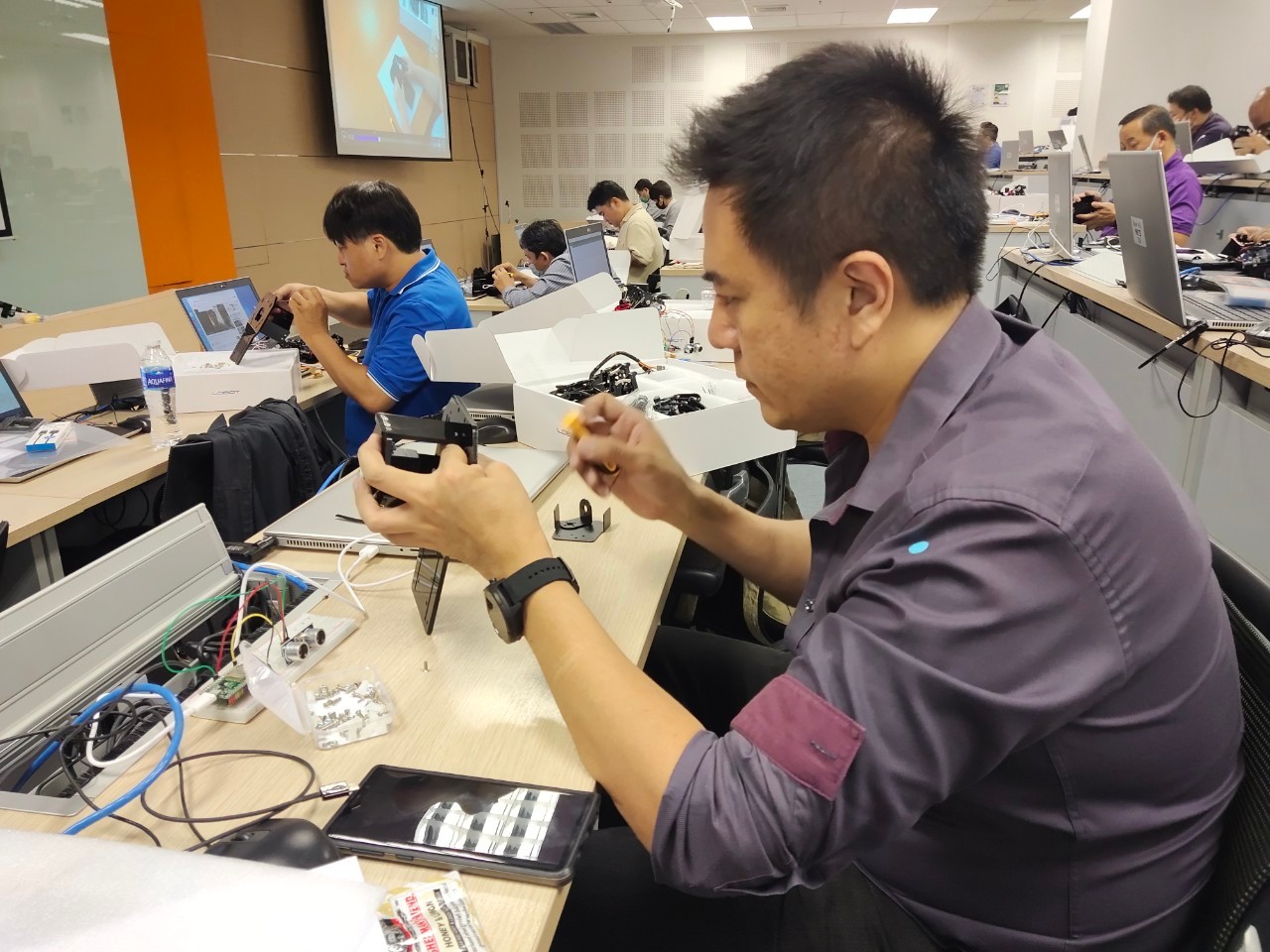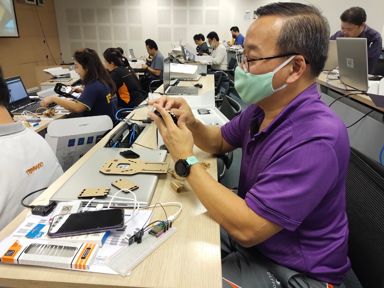 สถาบันสหวิทยาการดิจิทัลและหุ่นยนต์ มหาวิทยาลัยเทคโนโลยีราชมงคลพระนคร จัดโครงการพัฒนาหลักสูตรและเนื้อหาวิทยาการหุ่นยนต์ฮิวแมนนอยด์ เพื่ออุตสาหกรรมบริการและการศึกษาด้วยเทคโนโลยีแบบ mix reality การสร้างหุ่นยนต์ด้วย Mixed reality หลักสูตร ระดับขั้นพื้นฐาน ปานกลาง และขั้นสูง รุ่นที่ 1-6 ระหว่างวันที่ ๑๓-๓๐ สิงหาคม 2563 เพื่อพัฒนาคอนเทนต์หลักสูตรฝึกอบรมการสร้างและประกอบหุ่นยนต์บริการด้วยเทคโนโลยี Mixed reality ทั้งนี้ได้รับเกียรติจาก นาวาตรี ดร.วุฒิพงศ์ พงศ์สุวรรณ ผู้เชี่ยวชาญด้าน Digital Technology AR , VR และระบบ ROS เป็นวิทยากรให้ความรู้ในเรื่องของ การใช้งานโปรแกรม Arduino IDE เชื่อมต่อกับบอร์ดคอนโทรเลอร์ , การใช้งานโปรแกรม Unity , Workshop การใช้งานมือกล เป็นต้น โดยมีผู้สนใจเข้าร่วมอบรม ประกอบด้วยนักศึกษา บุคลากรของรัฐ และภาคเอกชน ณ สำนักบริการคอมพิวเตอร์ ห้องปฏิบัติการคอมพิวเตอร์ ชั้น 4 มหาวิทยาลัยเกษตรศาสตร์ (บางเขน) กรุงเทพฯ