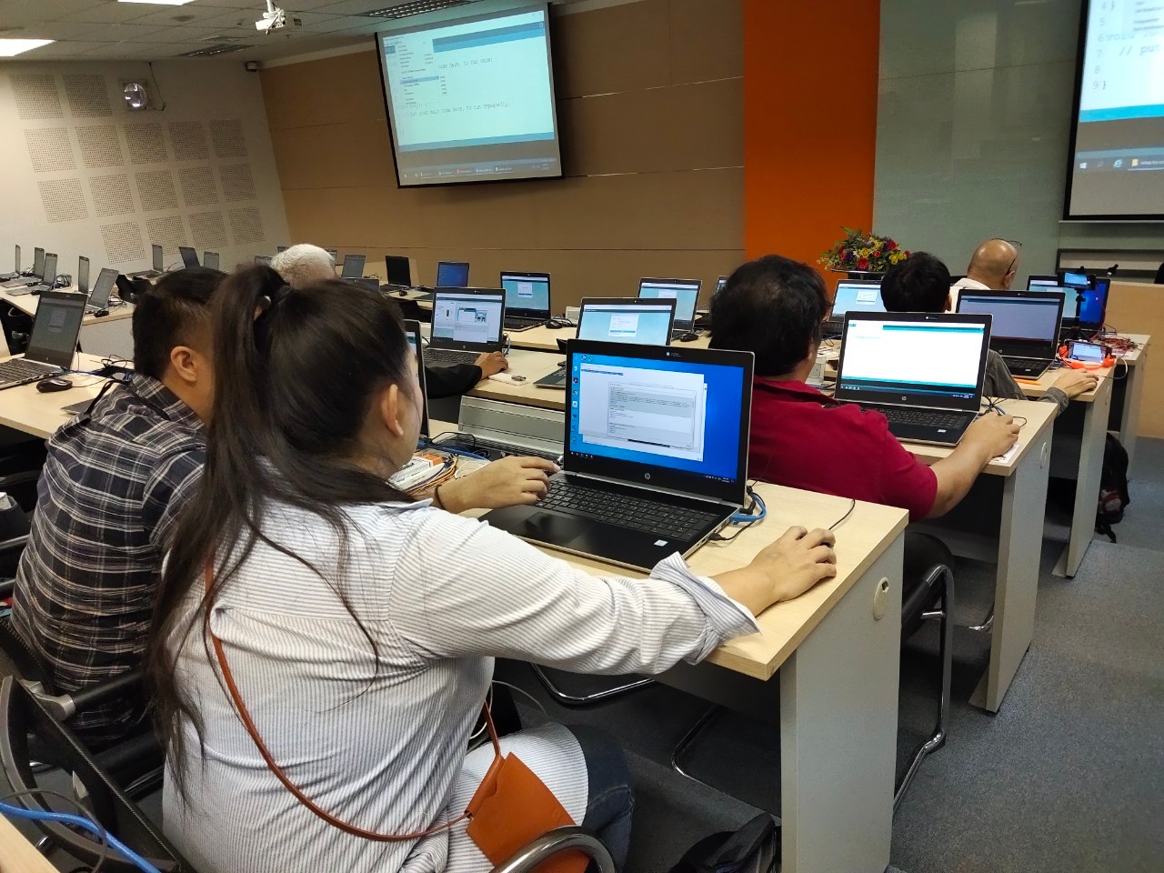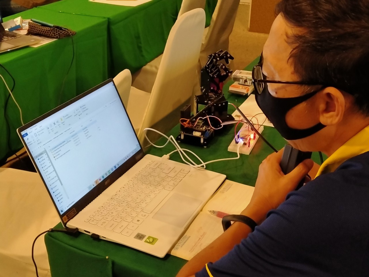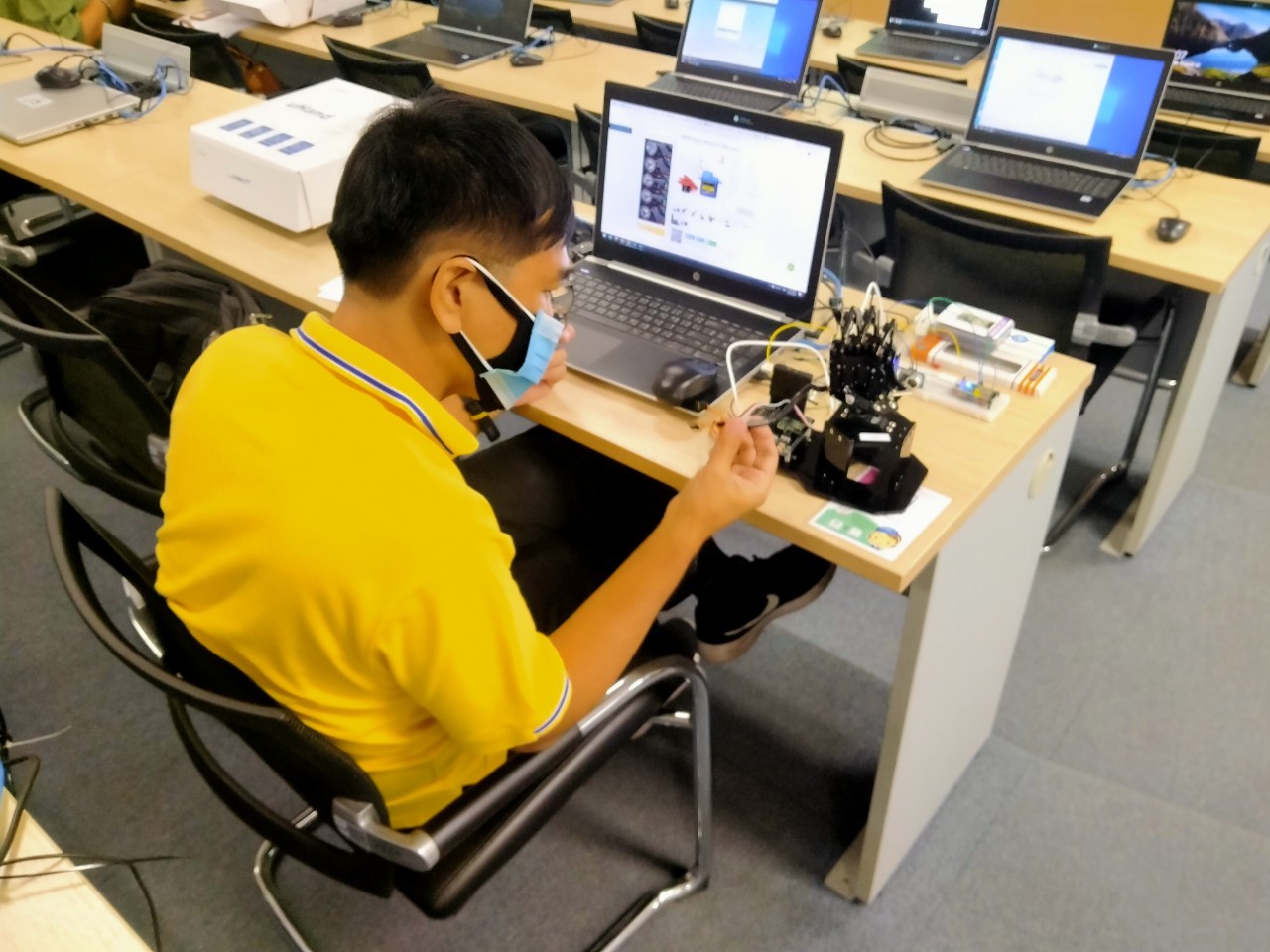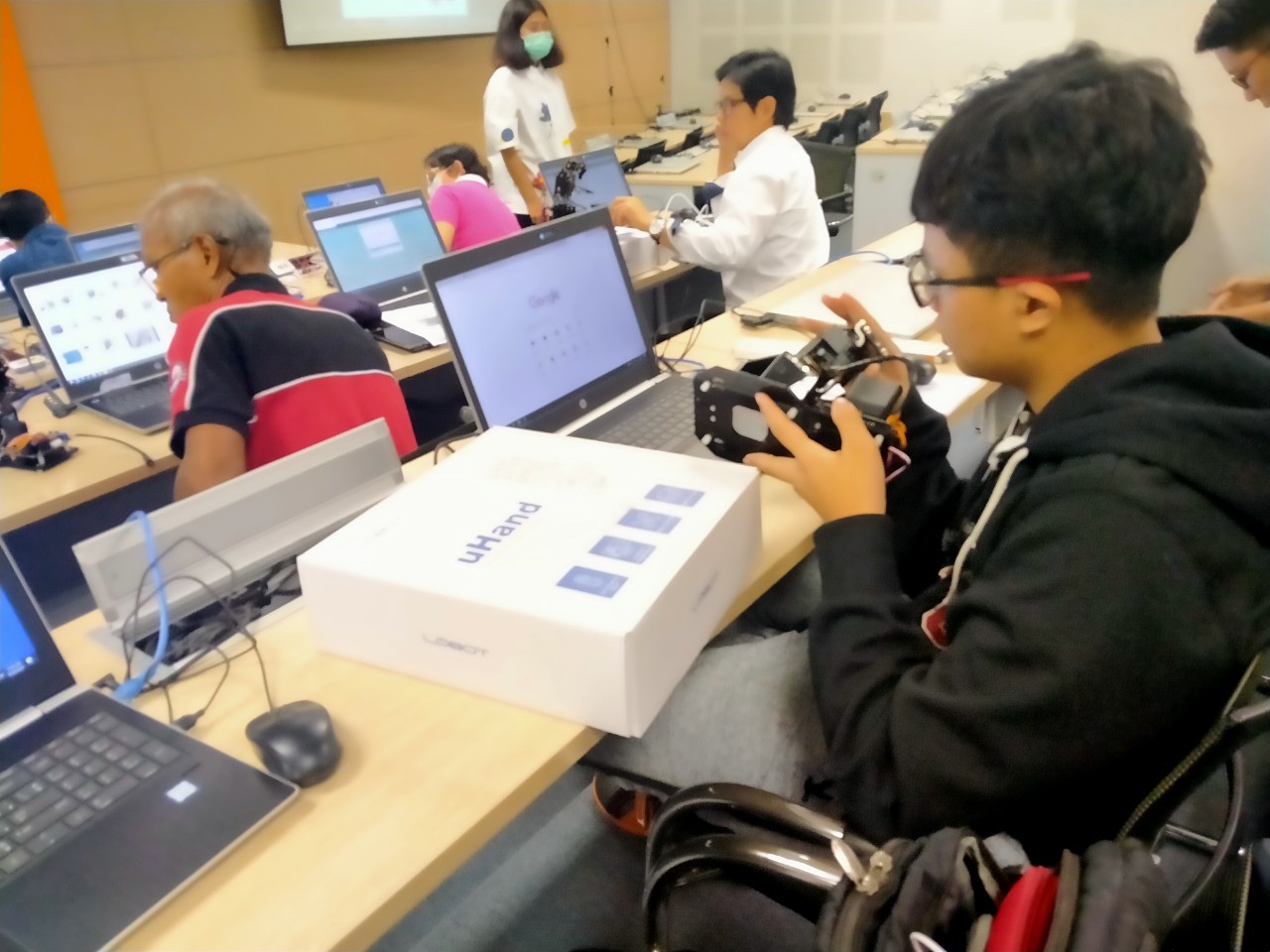 สถาบันสหวิทยาการดิจิทัลและหุ่นยนต์ มหาวิทยาลัยเทคโนโลยีราชมงคลพระนคร จัดโครงการอบรม “พัฒนาหลักสูตรและเนื้อหาวิทยาการหุ่นยนต์ฮิวแมนนอยด์ เพื่ออุตสาหกรรมบริการและการศึกษาด้วยเทคโนโลยีแบบ mix reality” โดยผู้เข้าอบรมจะได้รับเนื้อหาและความรู้ในเรื่องของ การใช้งานโปรแกรม Unity , ทดสอบการเขียนคำสั่งบังคับ servo motor , ควบคุมบอร์ดคอนโทรเลอร์ผ่าน AR และ Workshop มือกล ฯลฯ การอบรมในครั้งนี้ได้รับความสนใจจากผู้เข้าร่วมอบรมเป็นอย่างดี อาทิ นักศึกษา บุคลากรภาครัฐและภาคอุตสาหกรรมมากมาย ฯลฯ การอบรมจัดขึ้นทั้งหมด 6 รุ่น ระหว่างวันที่ 13 – 30 สิงหาคม 2563 ณ สำนักบริการคอมพิวเตอร์ มหาวิทยาลัยเกษตรศาสตร์ (บางเขน)