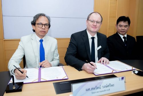 เมื่อวันที่ ๙ ธันวาคม ๒๕๖๓ ผศ.สหรัตน์ วงษ์ศรีษะ รักษาราชการแทนอธิการบดี พร้อมด้วย ดร.ปริญญ์ บุญกนิษฐ รองอธิการบดีฝ่ายพัฒนากิจการและภาคีความร่วมมือ ดร.ณัฐวรพล รัชสิริวัชรบุล คณบดีคณะวิศวกรรมศาสตร์ และ ดร.รัตนาวลี ไม้สัก คณบดีคณะบริหารธุรกิจ มหาวิทยาลัยเทคโนโลยีราชมงคลพระนคร ร่วมลงนามบันทึกข้อตกลงความร่วมมือในการพัฒนาด้านสายวิชาการ (MOU) ระหว่างมหาวิทยาลัยเทคโนโลยีราชมงคลพระนคร กับ Mr. Volker Schmid Director Asia Pacific Festo Didactic SE บริษัท เฟสโต้ จำกัด (Festo) มีวัตถุประสงค์เพื่อตกลงร่วมมือกันภายใต้โครงการพัฒนาการศึกษา และบุคลากรของ มทร.พระนคร โดยการพัฒนาบุคลากร อาจารย์ และนักศึกษา ของ มทร.พระนคร เพื่อสร้างความร่วมมือทางด้านการพัฒนาการศึกษาเทคโนโลยีและนวัตกรรม รวมถึงการพัฒนาทางด้านเทคโนโลยีขั้นสูงให้ทันสมัยกับปัจจุบัน เป็นแรงผลักดันให้เกิดความคิดสร้างสรรค์ใหม่ๆ ที่จะเป็นพลังขับเคลื่อนทางเศรษฐกิจของประเทศต่อไป ณ ห้องประชุมรพีพัฒน์ สำนักงานอธิการบดี มหาวิทยาลัยเทคโนโลยีราชมงคลพระนคร (ศูนย์เทเวศร์)