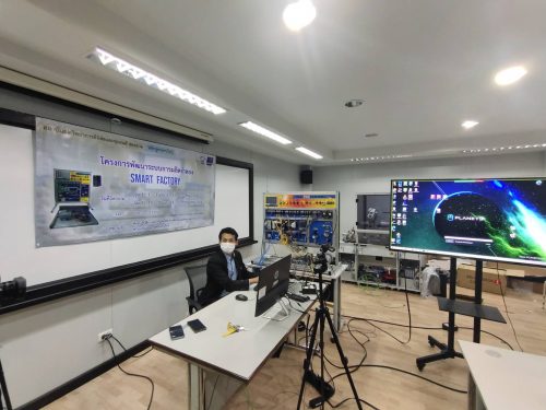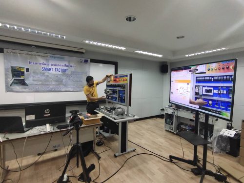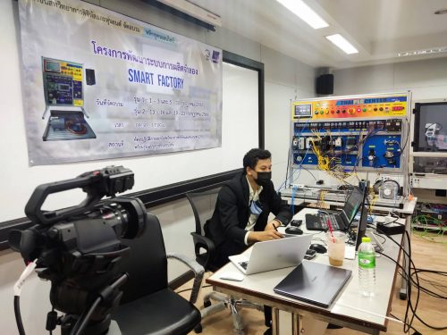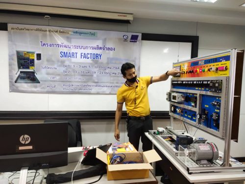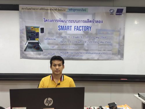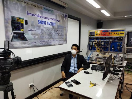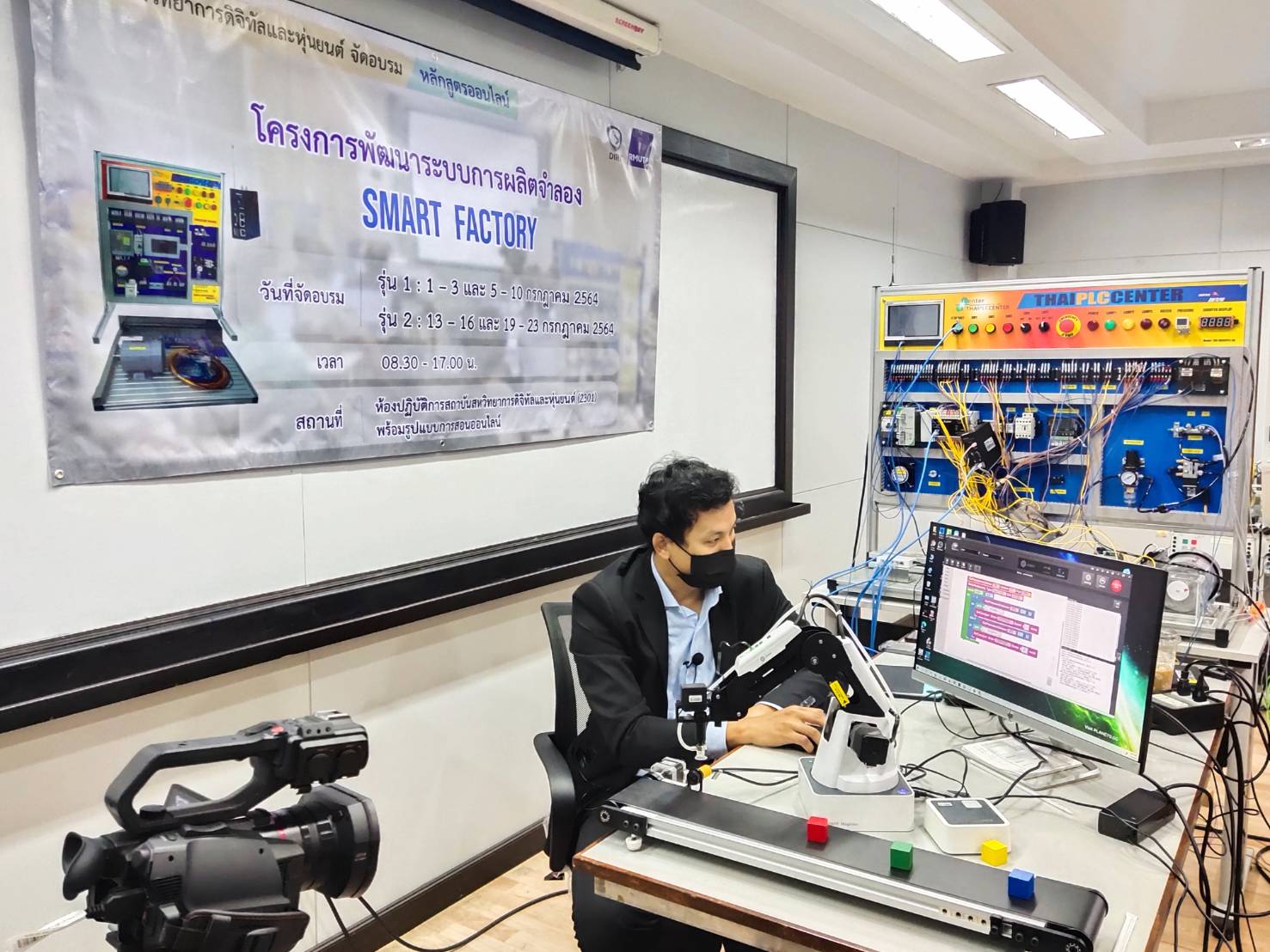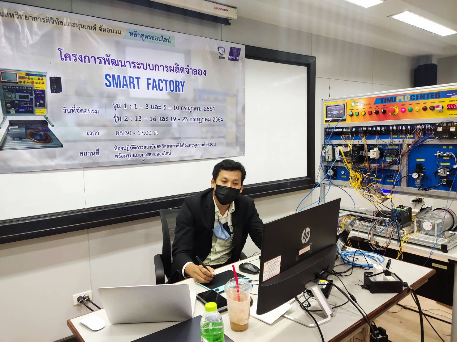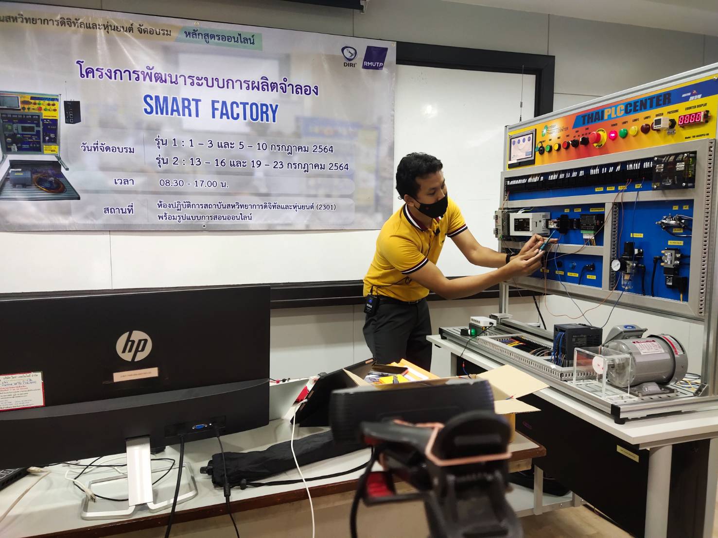 สถาบันสหวิทยาการดิจิทัลและหุ่นยนต์ มหาวิทยาลัยเทคโนโลยีราชมงคลพระนคร จัดโครงการอบรมออนไลน์การพัฒนาระบบการผลิตจำลอง Smart Factory รุ่นที่ 1 ผู้เข้าอบรมจะได้รับเนื้อหาและการสาธิตกับอุปกรณ์จริงผ่านระบบออนไลน์ ในเรื่องพื้นฐานการต่อสายและเขียนโปรแกรมสำหรับ PLC (Wiring & Basic PLC Programming) , การเขียนโปรแกรมสำหรับ HMI (Human Machine Interface) , การเขียนโปรแกรมสำหรับระบบลำเลียง , หุ่นยนต์สำหรับอุตสาหกรรมการผลิต , เรียนรู้การสร้าง Industrial Iot (IIoT) , ตัวอย่างการสร้างโรงงานต้นแบบ ฯลฯ ในการนี้ได้รับเกียรติจากทีมวิทยากรบริษัท ไทยพีแอลซีเซ็นเตอร์ จำกัด โดยมีบุคลากร และนักศึกษามหาวิทยาลัยเทคโนโลยีราชมงคลพระนคร ให้ความสนใจในการเข้าอบรมระบบออนไลน์ รุ่นที่ 1 ระหว่างวันที่ 1-3 และ 5-10 กรกฎาคม 2564 มหาวิทยาลัยเทคโนโลยีราชมงคลพระนคร ศูนย์พระนครเหนือ