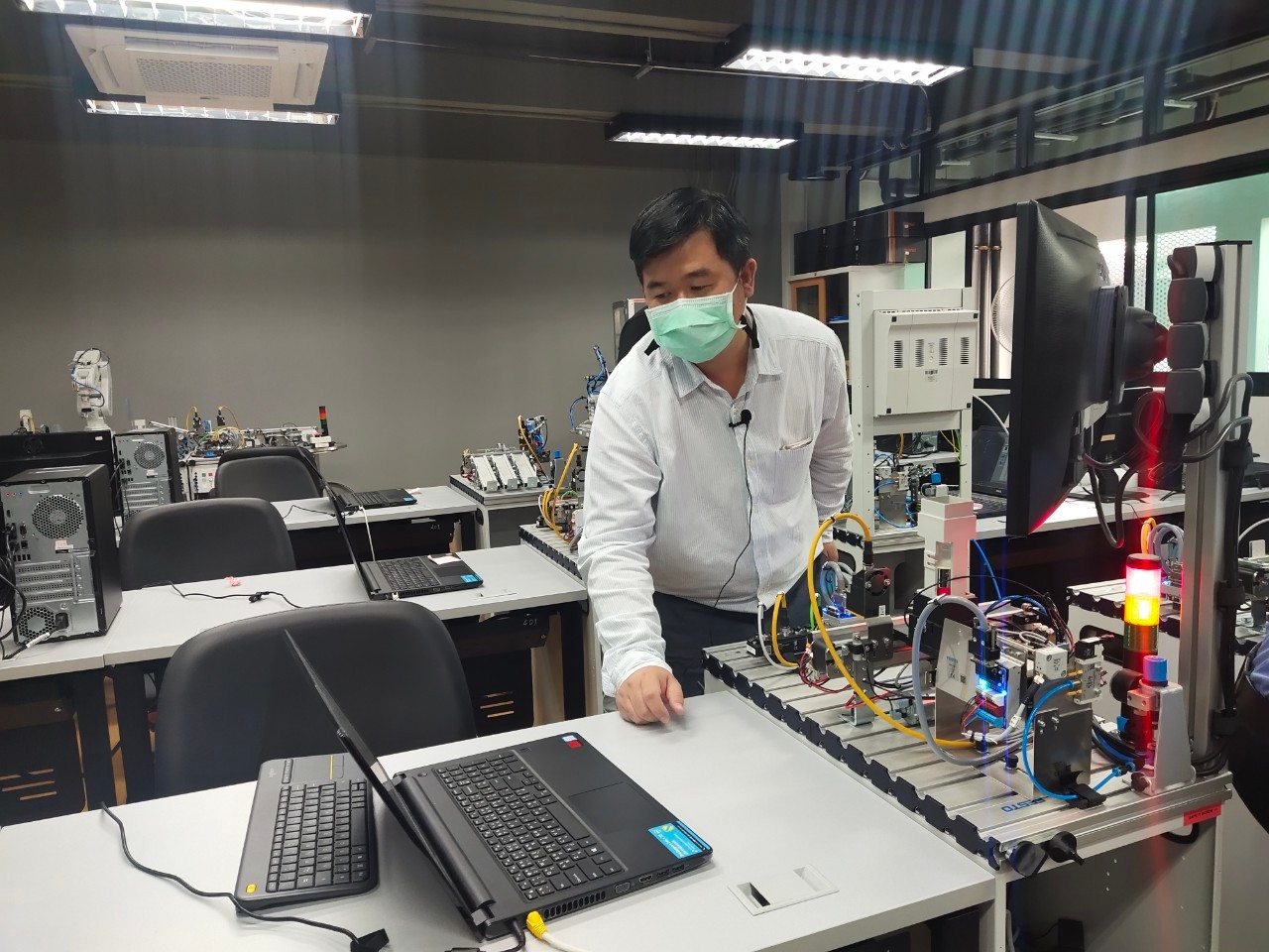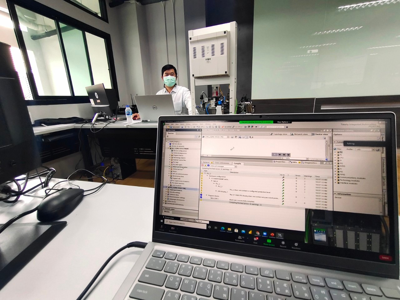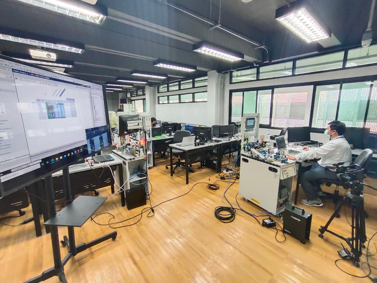 สถาบันสหวิทยาการดิจิทัลและหุ่นยนต์ มหาวิทยาลัยเทคโนโลยีราชมงคลพระนคร จัดโครงการอบรมหลักสูตร PLC & HMI Programming for Factory Automation System ผ่านระบบออนไลน์ โดยผู้เข้าอบรมได้เรียนรู้ในเรื่องของ Basic Instruction (Timer, Counter ,Comparator , Move) , The SIMATIC 1500 Overview , Hardware & Device Configuration , PLC Structure & Addressing , Transfer Function (Download / Upload ) , Introduction to WinCC RT Advance , WinCC Runtime Advance ทดลองการเขียนโปรแกรม PLC-HMI ควบคุมสถานีทั้ง 3 สถานี ฯลฯ ในการนี้ได้รับเกียรติจากคุณสาธิต รุ่งสว่าง วิทยากรจาก บริษัท Parrun Engineering โดยมีบุคลากร นักศึกษา และบุคคลภายนอกให้ความสนใจในการเข้าอบรมออนไลน์ในครั้งนี้ ระหว่างวันที่ 16-18 พฤศจิกายน 2564 (ระบบออนไลน์) ณ มหาวิทยาลัยเทคโนโลยีราชมงคลพระนคร ศูนย์พระนครเหนือ