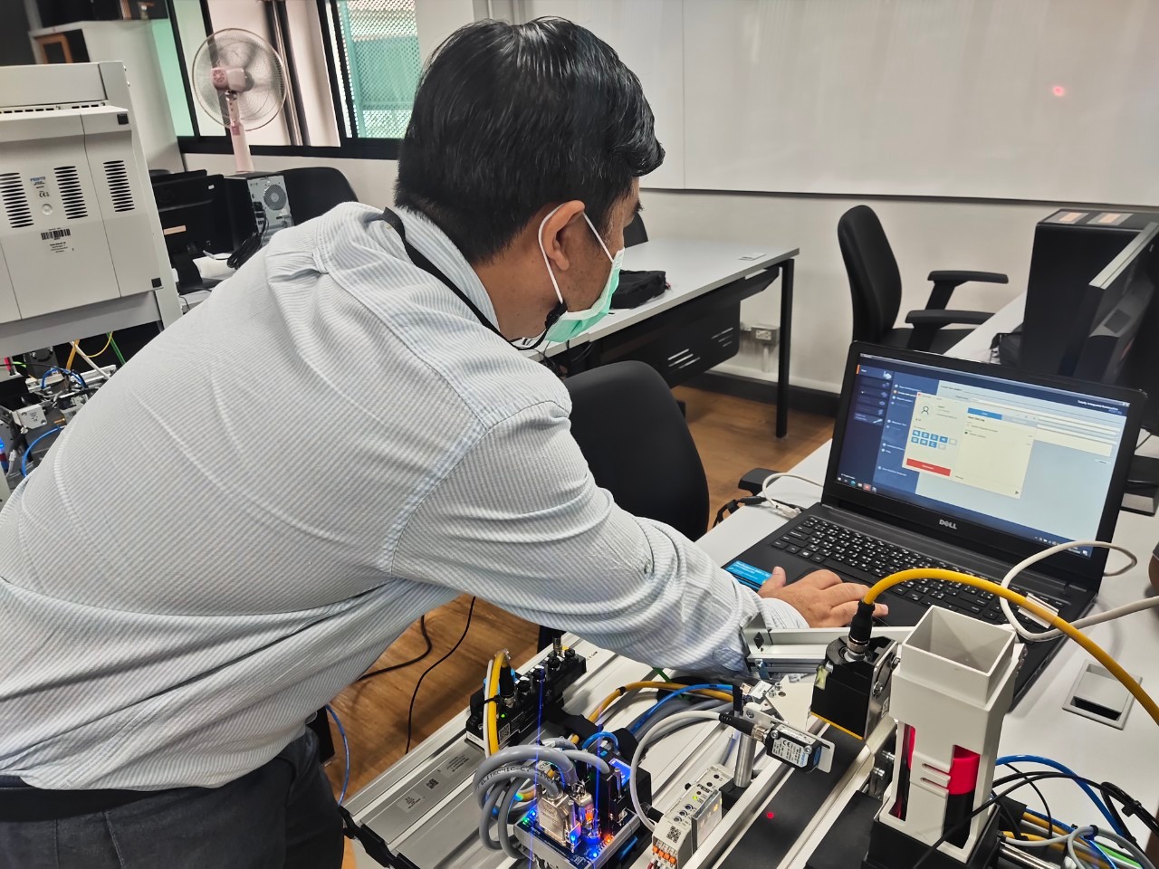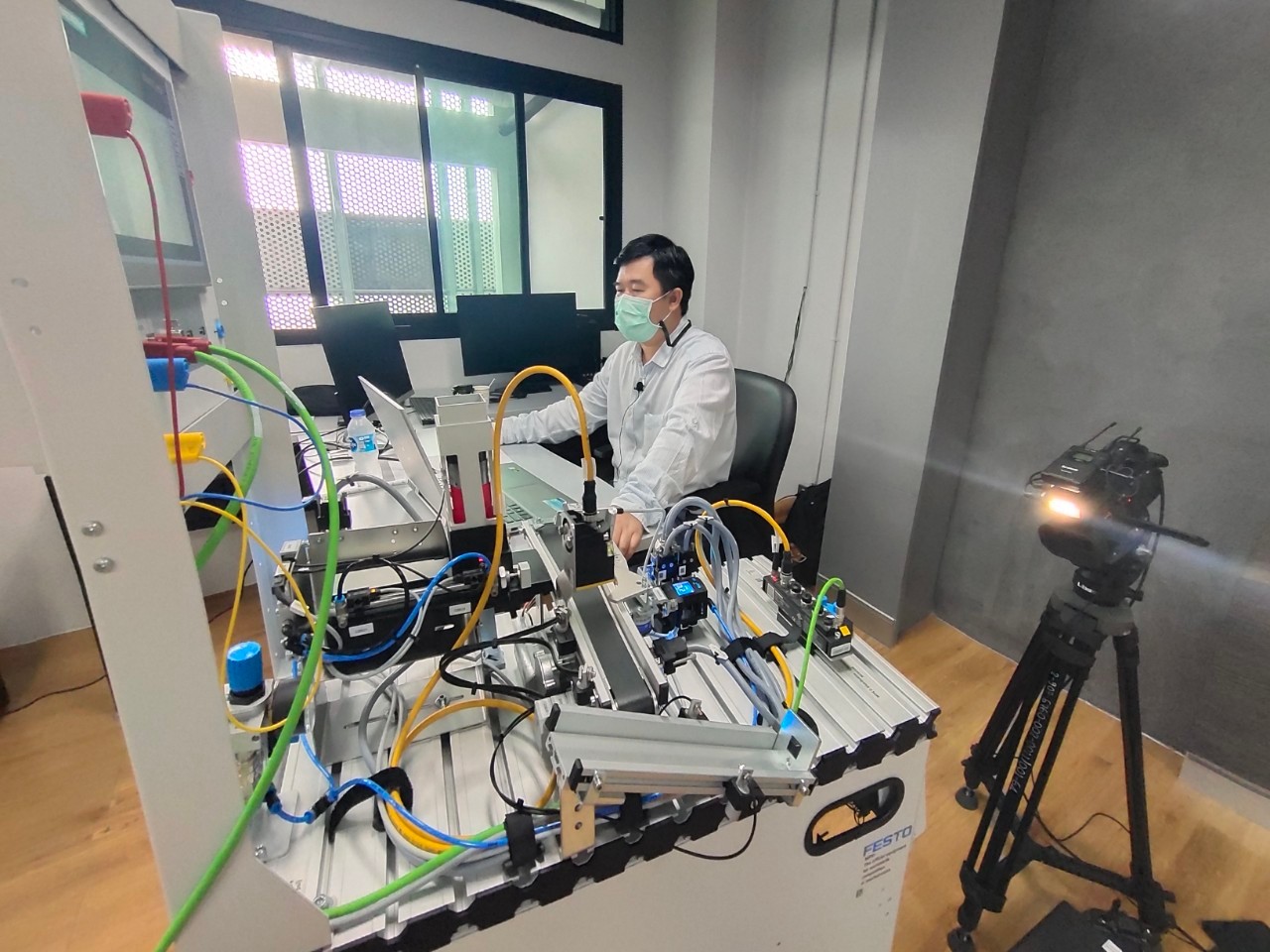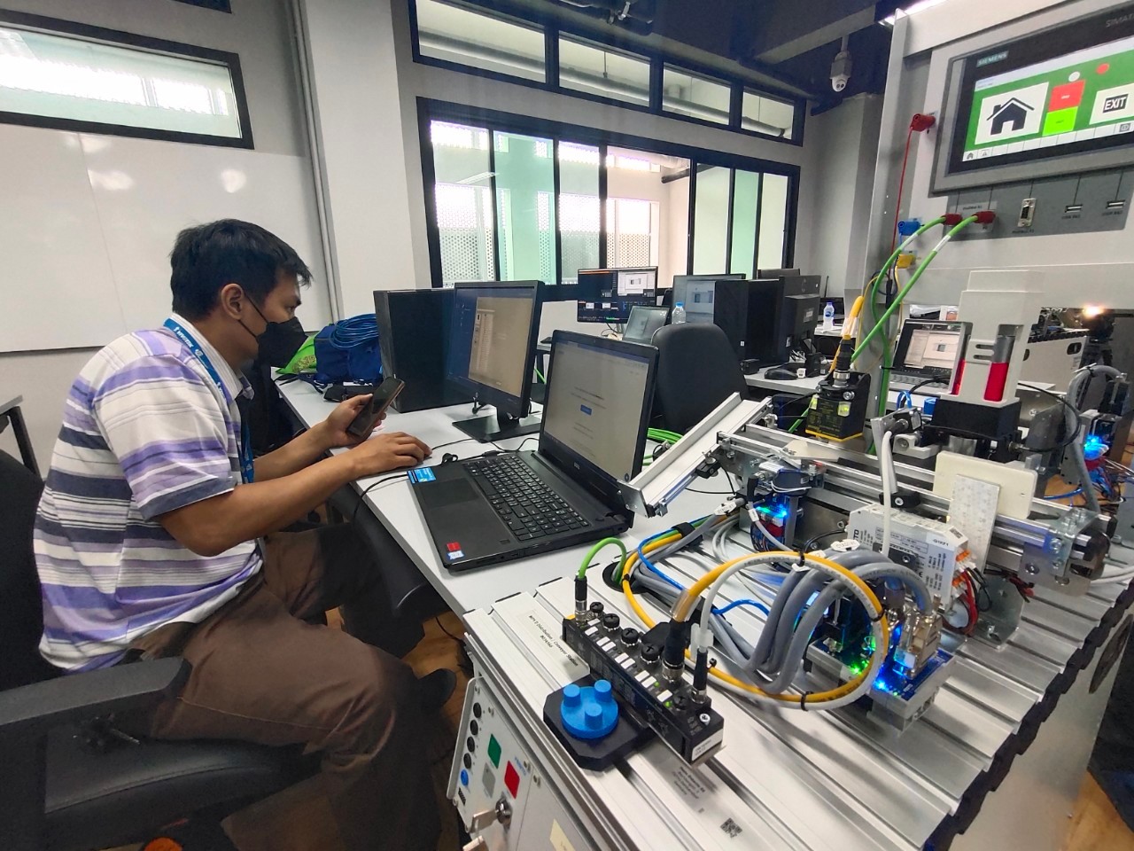 สถาบันสหวิทยาการดิจิทัลและหุ่นยนต์ มหาวิทยาลัยเทคโนโลยีราชมงคลพระนคร จัดโครงการอบรมหลักสูตร PLC & HMI Programming for Factory Automation System ผ่านระบบออนไลน์ โดยผู้เข้าอบรมได้เรียนรู้ในเรื่องของ Basic Instruction (Timer, Counter ,Comparator , Move) , The SIMATIC 1500 Overview , Hardware & Device Configuration , PLC Structure & Addressing , Transfer Function (Download / Upload ) , Introduction to WinCC RT Advance , WinCC Runtime Advance ทดลองการเขียนโปรแกรม PLC-HMI ควบคุมสถานีทั้ง 3 สถานี ฯลฯ ในการนี้ได้รับเกียรติจากคุณสาธิต รุ่งสว่าง วิทยากรจาก บริษัท Parrun Engineering โดยมีบุคลากร นักศึกษา และบุคคลภายนอกให้ความสนใจในการเข้าอบรมออนไลน์ในครั้งนี้ ระหว่างวันที่ 16-18 พฤศจิกายน 2564 (ระบบออนไลน์) ณ มหาวิทยาลัยเทคโนโลยีราชมงคลพระนคร ศูนย์พระนครเหนือ