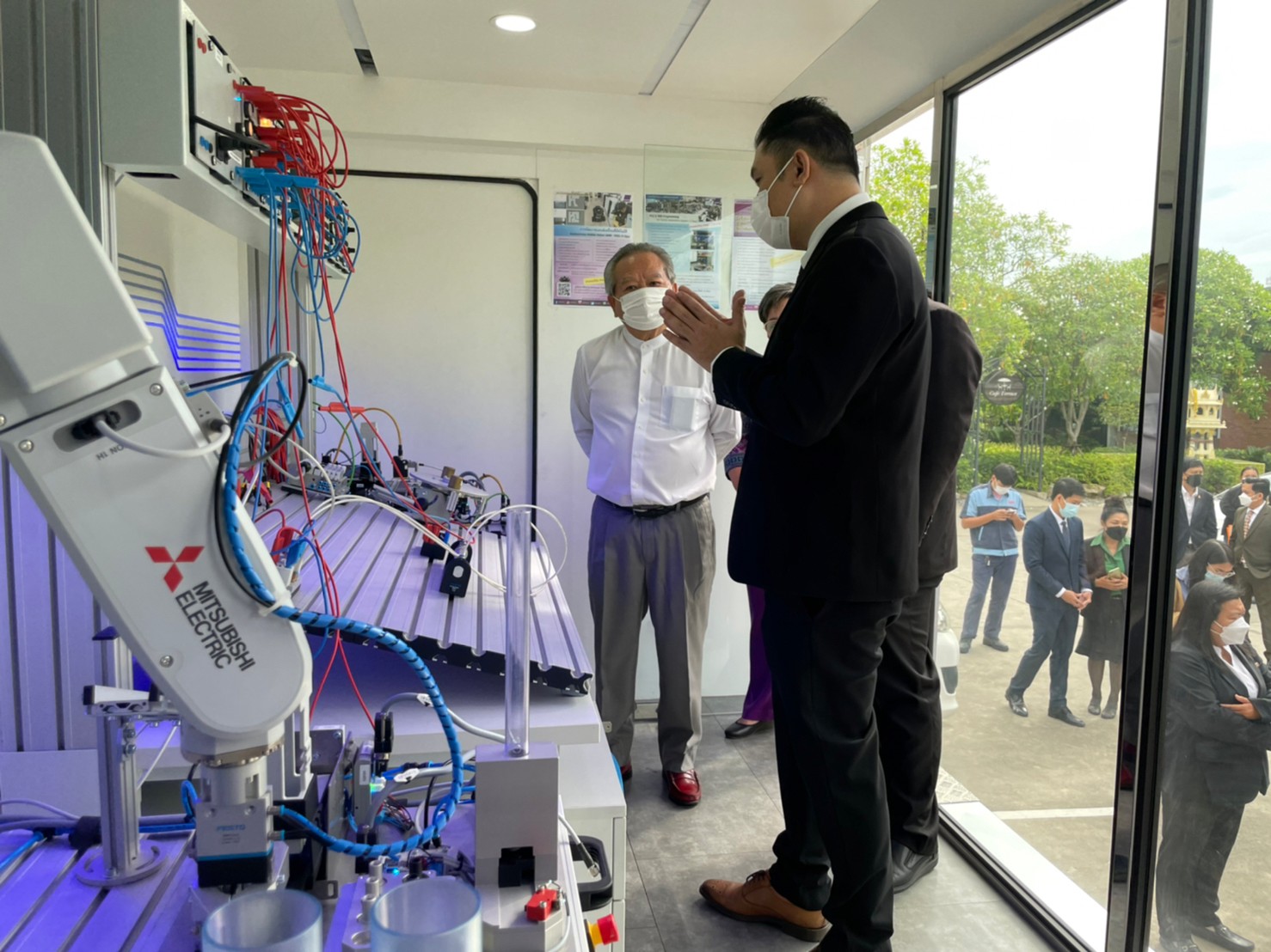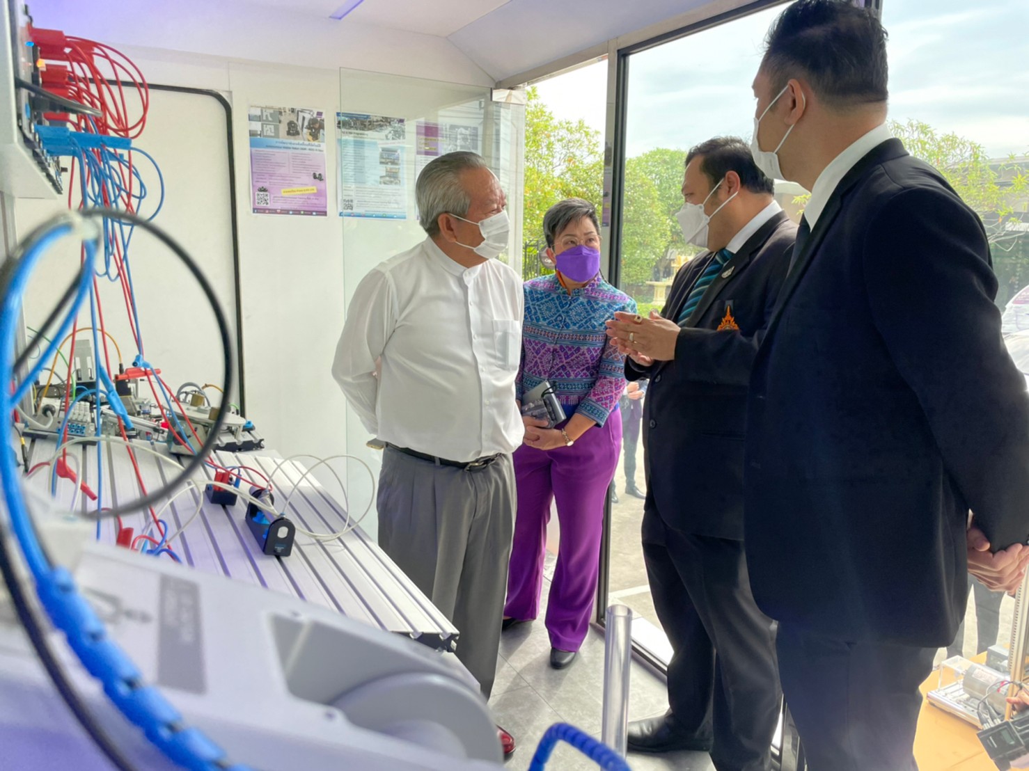 เมื่อวันที่ ๓๐ พฤศจิกายน ๒๕๖๔ ดร.ณัฐวรพล รัชสิริวัชรบุล อธิการบดี มหาวิทยาลัยเทคโนโลยีราชมงคลพระนคร ร่วมลงนามบันทึกข้อตกลงความร่วมมือทางวิชาการและพัฒนายกระดับขีดความสามารถแรงงาน ระหว่างมหาวิทยาลัยเทคโนโลยีราชมงคลพระนคร กับ นายพีระ ปัทมวรกุลชัย ประธานฝ่ายบริหาร บริษัท ปิ่นทอง อินดัสเตรียลปาร์ค จำกัด (มหาชน) และสมาคมส่งเสริมทักษะแรงงานมาตรฐานอาชีพนิคมอุตสาหกรรมปิ่นทอง โดยมีวัตถุประสงค์เพื่อพัฒนาเครือข่ายความร่วมมือทางบริการวิชาการ และพัฒนา ยกระดับขีดความสามารถแรงงาน เพื่อตอบสนองความต้องการในพื้นที่เป้าหมาย ตลอดจนพัฒนาความร่วมมือในการดำเนินกิจกรรมเพื่อพัฒนาศักยภาพของทุกฝ่ายที่เกี่ยวข้องที่จะเป็นพลังขับเคลื่อนทางเศรษฐกิจของประเทศต่อไป ทั้งนี้ได้ให้เกียรติเยี่ยมชมรถติดตั้งอุปกรณ์การสอนด้านดิจิทัลและหุ่นยนต์ ของทางสถาบันสหวิทยาการดิจิทัลและหุ่นยนต์ ที่นำไปแสดงในครั้งนี้ ณ โรงแรมโมริโนะ นิคมอุตสาหกรรมปิ่นทอง 1 จังหวัดชลบุรี