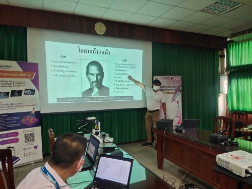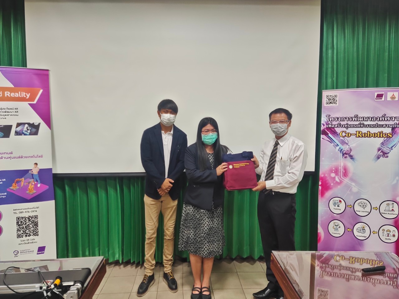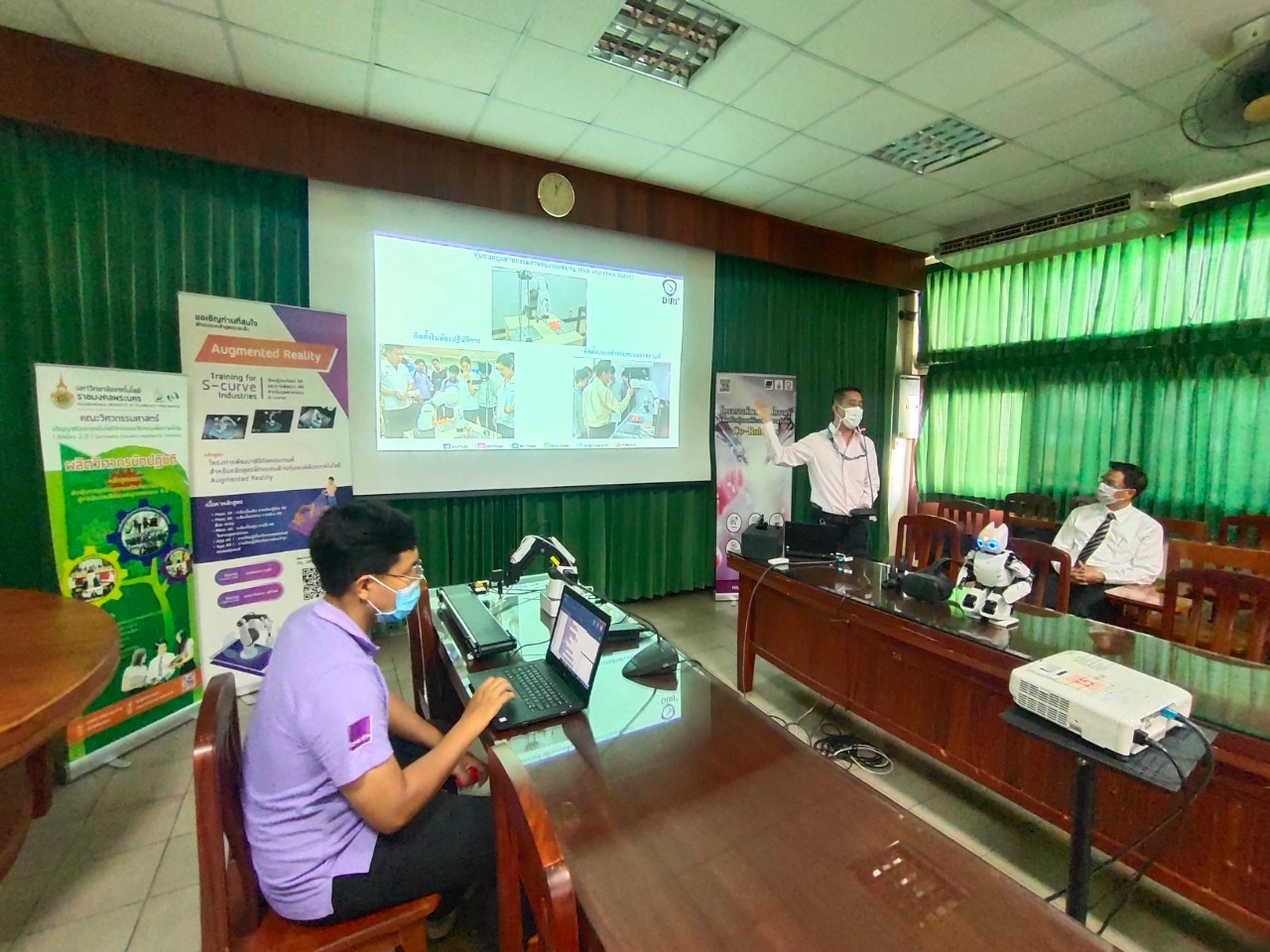 บุคลากรสถาบันสหวิทยาการดิจิทัลและหุ่นยนต์ ร่วมกับ คณะวิศวกรรมศาสตร์ มหาวิทยาลัยเทคโนโลยีราชมงคลพระนคร “จัดโครงการพัฒนาช่างเทคนิคสู่บัณฑิตพันธุ์ใหม่ผู้มีทักษะด้านวิศวกรรมเทคโนโลยีนวัตกรรมเพื่อความยั่งยืน” มีวัตถุประสงค์เพื่อบูรณาการการเรียนการสอนและพัฒนาช่างเทคนิคของวิทยาลัยเทคโนโลยีพระราม 6 สู่บัณฑิตพันธุ์ใหม่ผู้มีทักษะด้านวิศวกรรมเทคโนโลยีนวัตกรรมเพื่อความยั่งยืน โดยถ่ายทอดความรู้ในด้านต่างๆ เช่น การเขียนโปรแกรมควบคุมหุ่นยนต์อุตสาหกรรม , หุ่นยนต์เคลื่อนที่อัตโนมัติ (Autonomous Mobile Robot : AMR) หุ่นยนต์บริการ (Service robot) และถ่ายทอดองค์ความรู้และพัฒนาทักษะการทำงานในอนาคตให้กับนักศึกษา ทั้งนี้ได้รับความสนใจจากท่านอาจารย์ บุคลากร และนักศึกษาเป็นอย่างดี ณ วิทยาลัยเทคโนโลยีพระราม 6 เมื่อวันที่ ๒๔ มกราคม พ.ศ. ๒๕๖๕