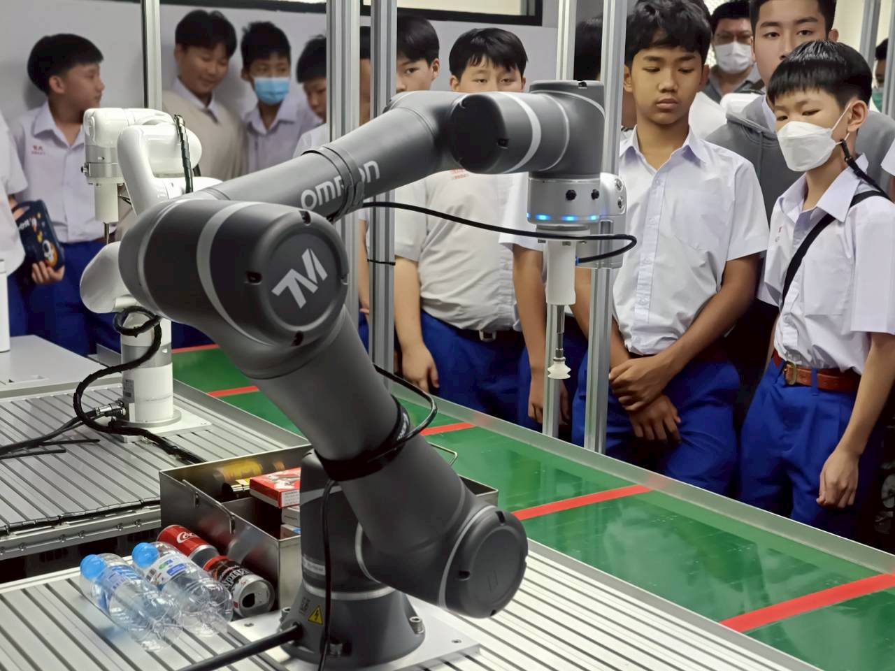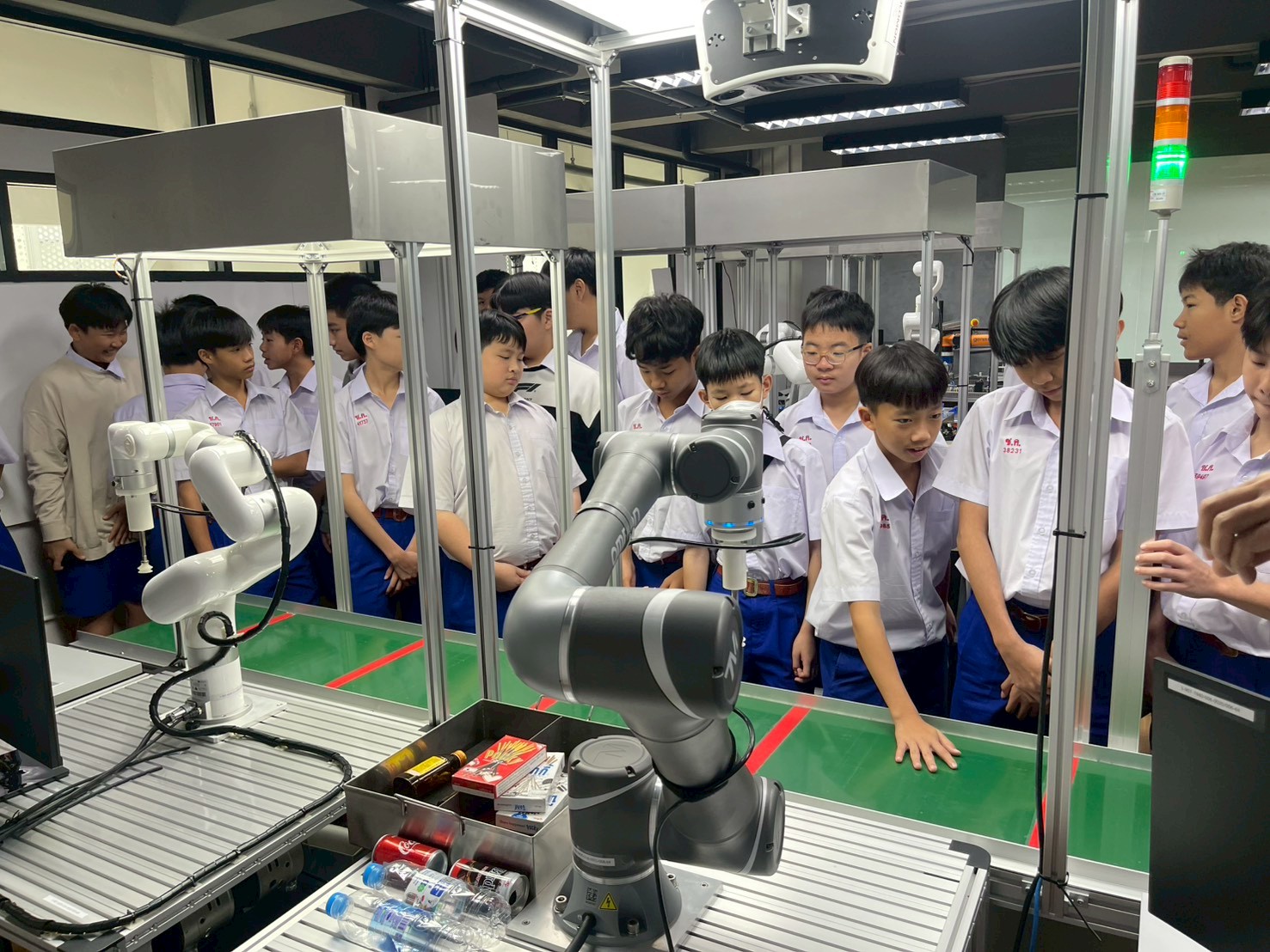อาจารย์ธีรเชษฐ์ แพ่งธีระสุขมัย ผู้อำนวยการสถาบันสหวิทยาการดิจิทัลและหุ่นยนต์ ได้ให้เกียรติกล่าวต้อนรับคณะครูและนักเรียนจาก โรงเรียนเซนต์คาเบรียล ในโอกาสเข้าเยี่ยมชมและศึกษาดูงาน พร้อมแนะนำภารกิจ บทบาท และแนวทางการดำเนินงานของสถาบันฯ ด้านเทคโนโลยีดิจิทัลและหุ่นยนต์ เยี่ยมชมห้องปฏิบัติการของสถาบันฯ และการถ่ายทอดองค์ความรู้ด้านแนวทางการศึกษา การพัฒนาศักยภาพผู้เรียน รวมถึงแนวทางการศึกษาต่อ โดย กองพัฒนานักศึกษา มทร.พระนคร จากนั้นได้จัดกิจกรรม Workshop งานด้านดิจิทัลและหุ่นยนต์สำหรับกระบวนการผลิต เพื่อเสริมสร้างความรู้และประสบการณ์ตรงให้แก่นักเรียน การจัดกิจกรรมในครั้งนี้มีวัตถุประสงค์เพื่อส่งเสริมการเรียนรู้ด้านวิทยาศาสตร์ เทคโนโลยี และนวัตกรรม เปิดโอกาสให้นักเรียนได้สัมผัสประสบการณ์จริง และสร้างแรงบันดาลใจในการศึกษาต่อในสายดิจิทัลและหุ่นยนต์ในอนาคต วันที่ 28 มกราคม 2569 ณ อาคารสถาบันสหวิทยาการดิจิทัลและหุ่นยนต์ ศูนย์พระนครเหนือ