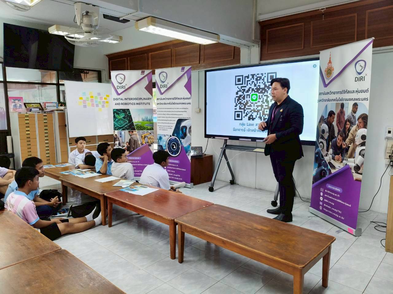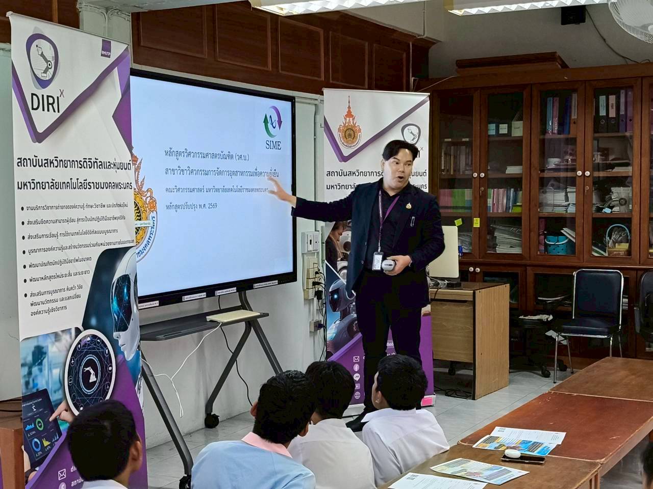 สถาบันสหวิทยาการดิจิทัลและหุ่นยนต์ มหาวิทยาลัยเทคโนโลยีราชมงคลพระนคร ได้จัดกิจกรรมบริการวิชาการและถ่ายทอดองค์ความรู้ด้านสหวิทยาการดิจิทัลและหุ่นยนต์ รวมถึงเทคโนโลยีอุตสาหกรรม 4.0 ให้แก่นักเรียนและอาจารย์ โดยมีวัตถุประสงค์เพื่อเสริมสร้างความรู้ ความเข้าใจ และเปิดมุมมองด้านเทคโนโลยีดิจิทัล ระบบอัตโนมัติ หุ่นยนต์ และแนวคิดอุตสาหกรรม 4.0 ซึ่งเป็นทักษะสำคัญในศตวรรษที่ 21 โดยมีการบรรยายให้ความรู้ พร้อมยกตัวอย่างการประยุกต์ใช้เทคโนโลยีในภาคอุตสาหกรรมจริง เพื่อให้นักเรียนได้เห็นแนวทางการต่อยอดองค์ความรู้สู่การศึกษาระดับที่สูงขึ้น และการเตรียมความพร้อมสู่เส้นทางอาชีพในอนาคต เมื่อวันที่ 12 กุมภาพันธ์ 2569 ณ โรงเรียนสวนกุหลาบวิทยาลัยนนทบุรี