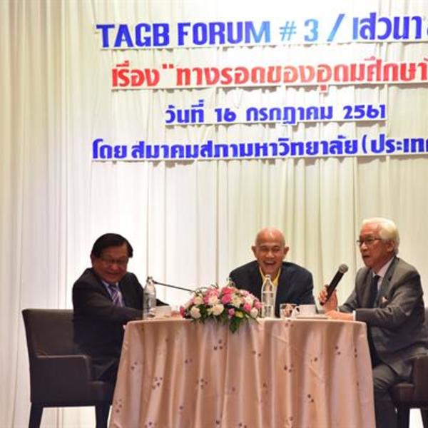 การจัดเสวนา ของสสมท ครั้งที่ 3 เรื่อง”ทางรอดของอุดมศึกษาไทย” จัดโดย สมาคมสภามหาวิทยาลัย (ประเทศไทย) ณ ห้องแมนดาริน มีบรรยายทั้งหมด 5 ท่าน ดังนี้