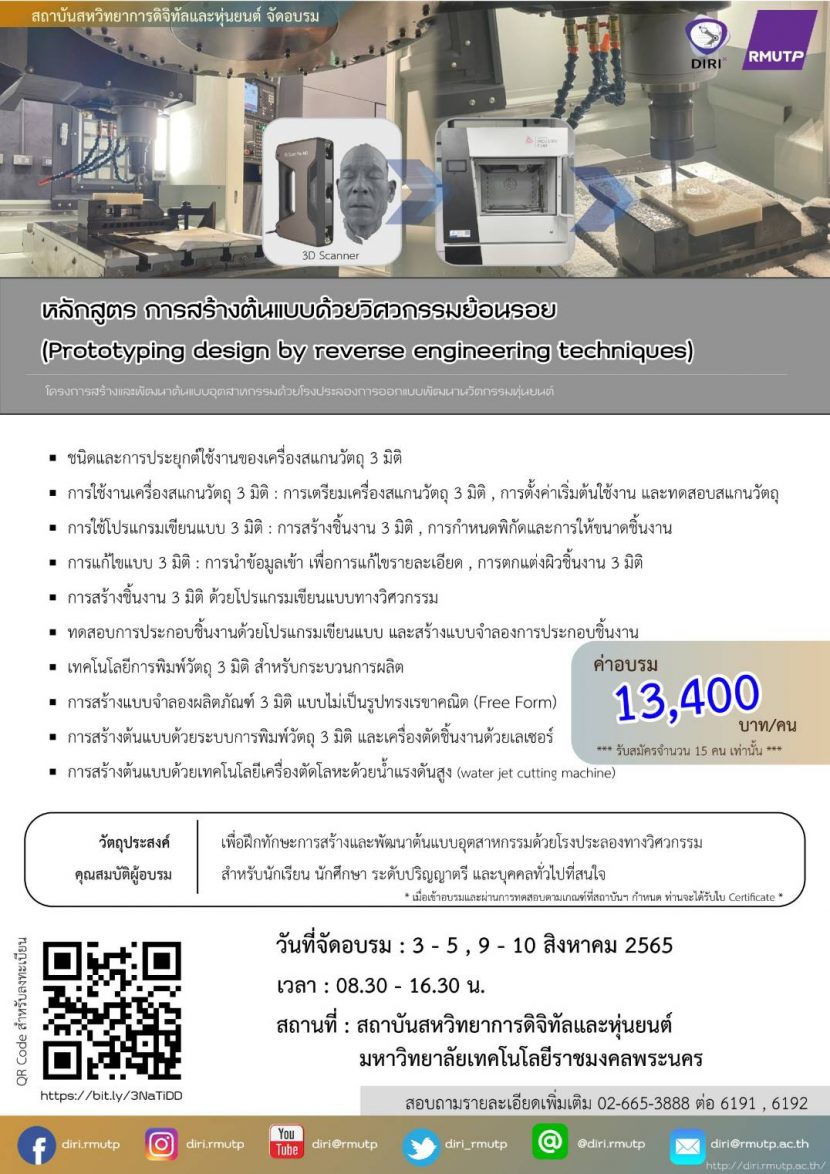 สถาบันสหวิทยาการดิจิทัลและหุ่นยนต์ มหาวิทยาลัยเทคโนโลยีราชมงคลพระนคร ขอเชิญผู้สนใจทุกท่าน เข้าร่วมอบรมหลักสูตร การสร้างต้นแบบด้วยวิศวกรรมย้อนรอย […]