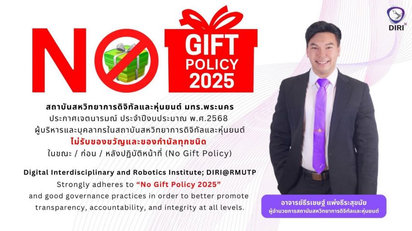 สถาบันสหวิทยาการดิจิทัลและหุ่นยนต์ มหาวิทยาลัยเทคโนโลยีราชมงคลพระนคร ร่วมประกาศเจตนารมณ์ตามนโยบายการไม่รับของขวัญและของกำนัลทุกชนิดจากการปฏิบัติหน้าที่ (No Gift […]